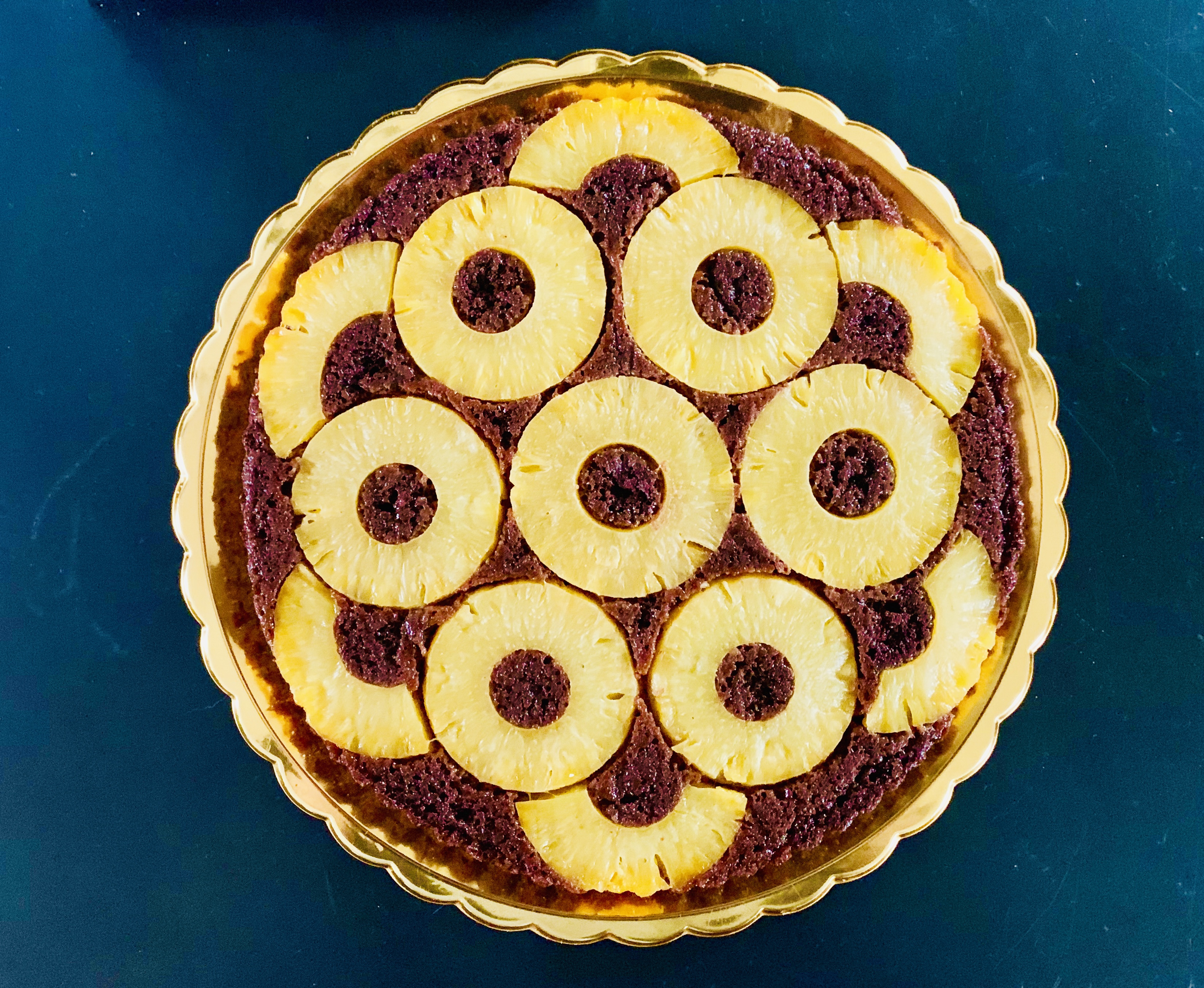 Lascia raffreddare, smodella la torta, girala sottosopra e usa il liquido di conservazione dell’ananas per lucidarla.