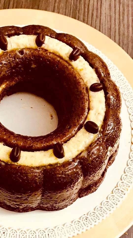 Versare metà del composto in una tortiera da 22 cm già imburrata e infarinata con fecola di patate, (io, che amo le forme di silicone, ho usato una ciambella dal disegno accattivante) inserire il disco di pastiera congelata e coprire con il resto del composto e mettere in forno statico a 180° per circa 50 minuti, dopo 40 minuti verificare la cottura con uno stecchino.