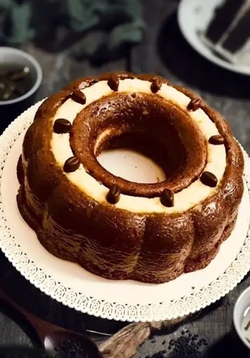 Una volta cotta lasciare raffreddare la torta su una griglia, poi sformarla e girarla sottosopra e spolverizzare la superficie con zucchero a velo. (Io ho inserito un anello congelato del ripieno della pastiera nell’incavo lasciato dalla forma e chicchi di cioccolato per decorare).