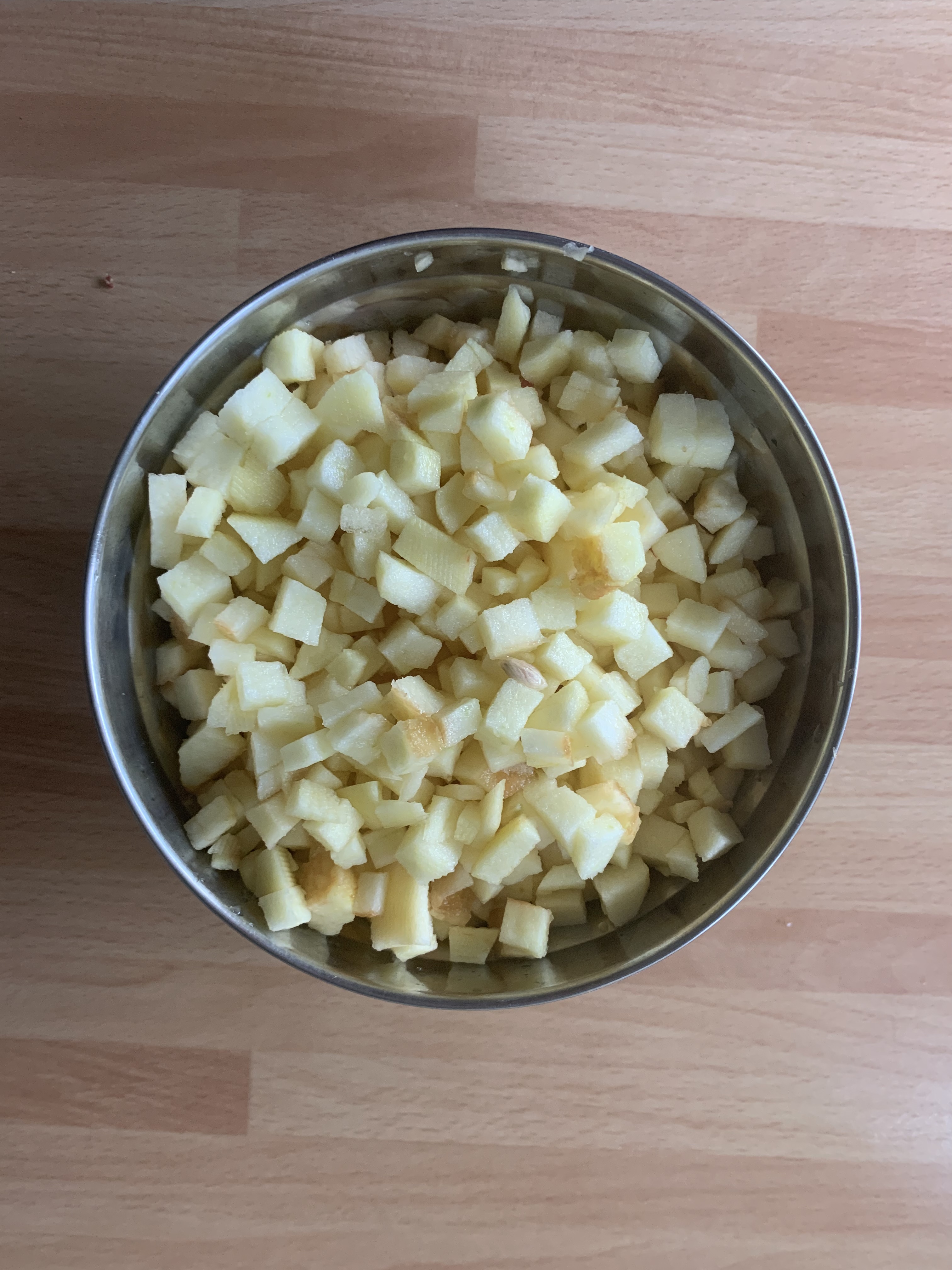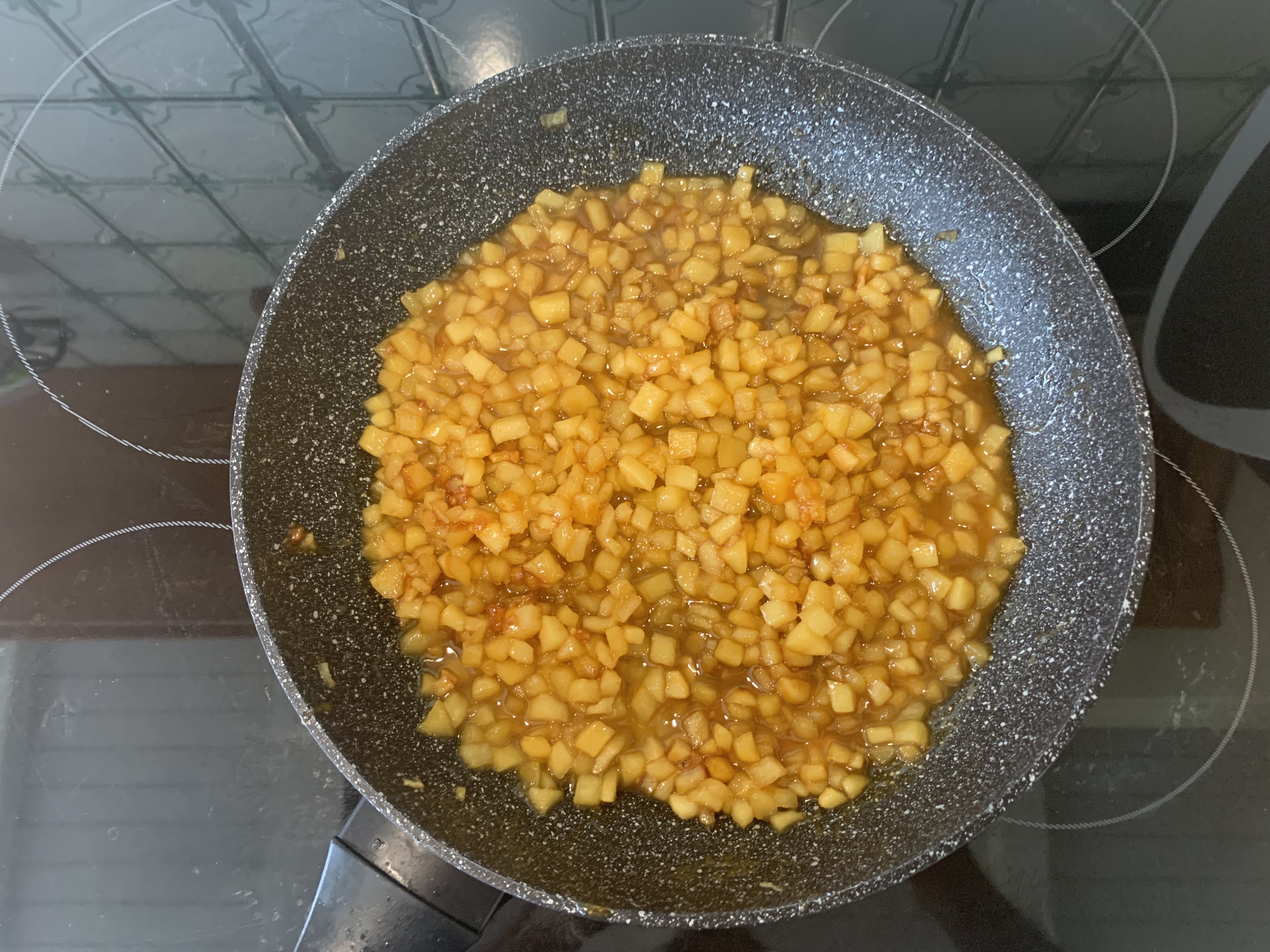 Oppure si puo’ scavare l’intera parte superiore della torta per un paio di centimetri e riempirla con i cubetti di mela caramellati.
