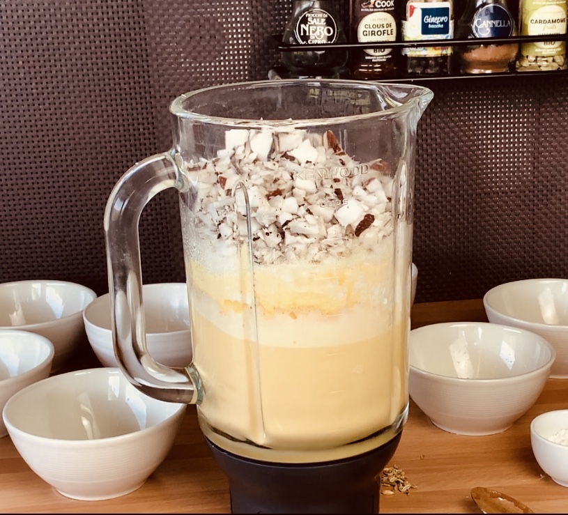Io per renderla più rapida la preparazione e omogeneo il composto ho usato il frullatore, mettendo a frullare prima tutti gli ingredienti umidi e poi quelli secchi e per ultimo il lievito.