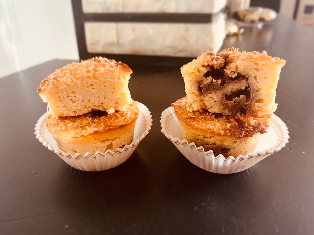 Dolcetto rapido da preparare grazie all’ausilio del frullatore, la metà li ho farciti con un ovetto di cioccolato, gli altri li ho lasciati puri al sapore del solo cocco e mais, morbidi, cremosi e gustosissimi.