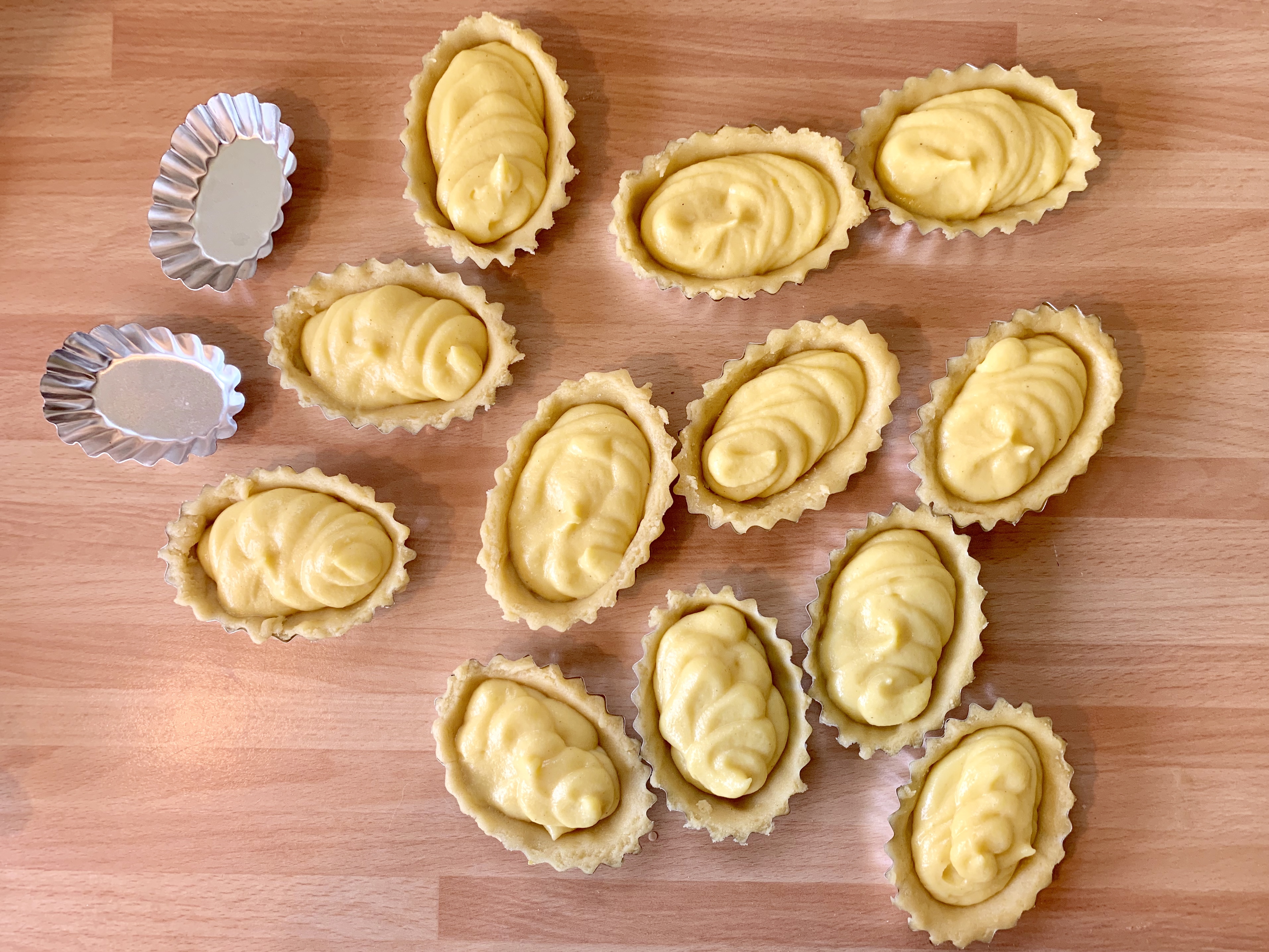 Simbolo della pasticceria salentina sono formati da un guscio di pasta frolla croccante e un ripieno di crema pasticcera, poi alcuni come me mettono al centro 1 o più amarene.
