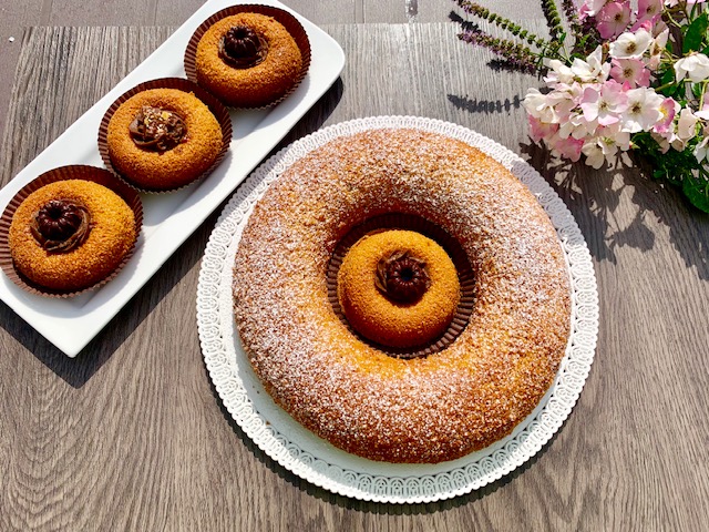 Raddoppiando la ricetta ho anche usato 12 formine individuali a forma di ciambellina.