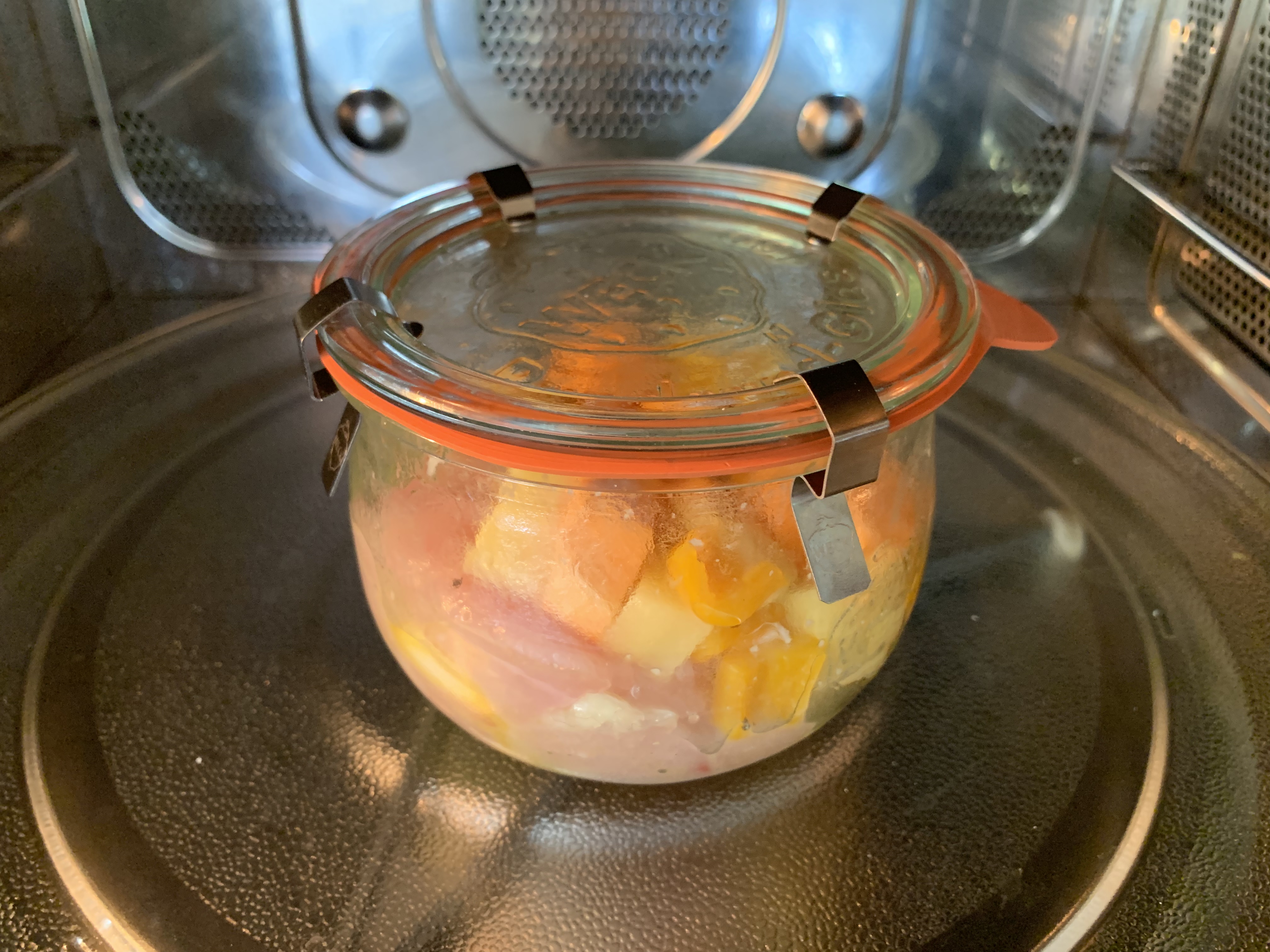 Cuocere in microonde per 6 minuti a 750W e preparare il secondo vasetto, ricordo che i vasetti vanno sempre cotti uno alla volta.