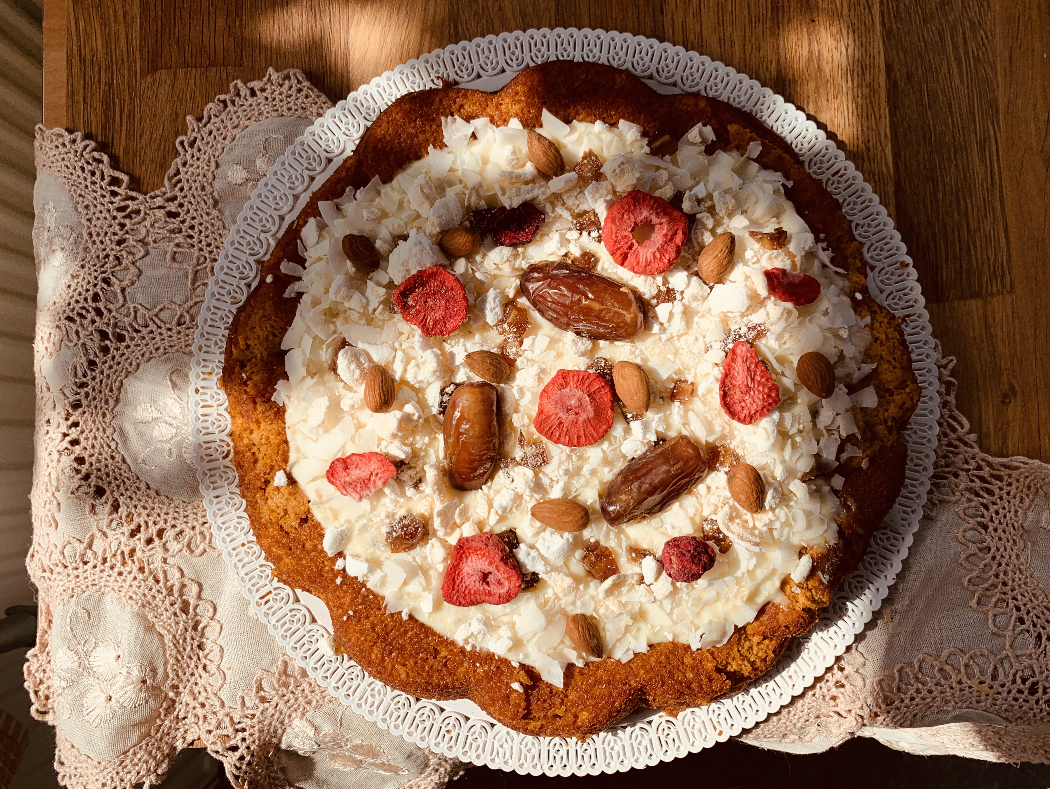Ho fatto tante torte di carote, ma quando ho visto questa ricetta dello Chef spagnolo Bosque, mi sono subito promesso di replicarla al più presto, è una torta priva glutine e lattosio, e senza zucchero tradizionale, ma quello di cocco che si aggiunge al dolce dei datteri che adoro, dopo averli mangiati in tutte le maniere durante la mia esperienza lavorativa in Dubai,