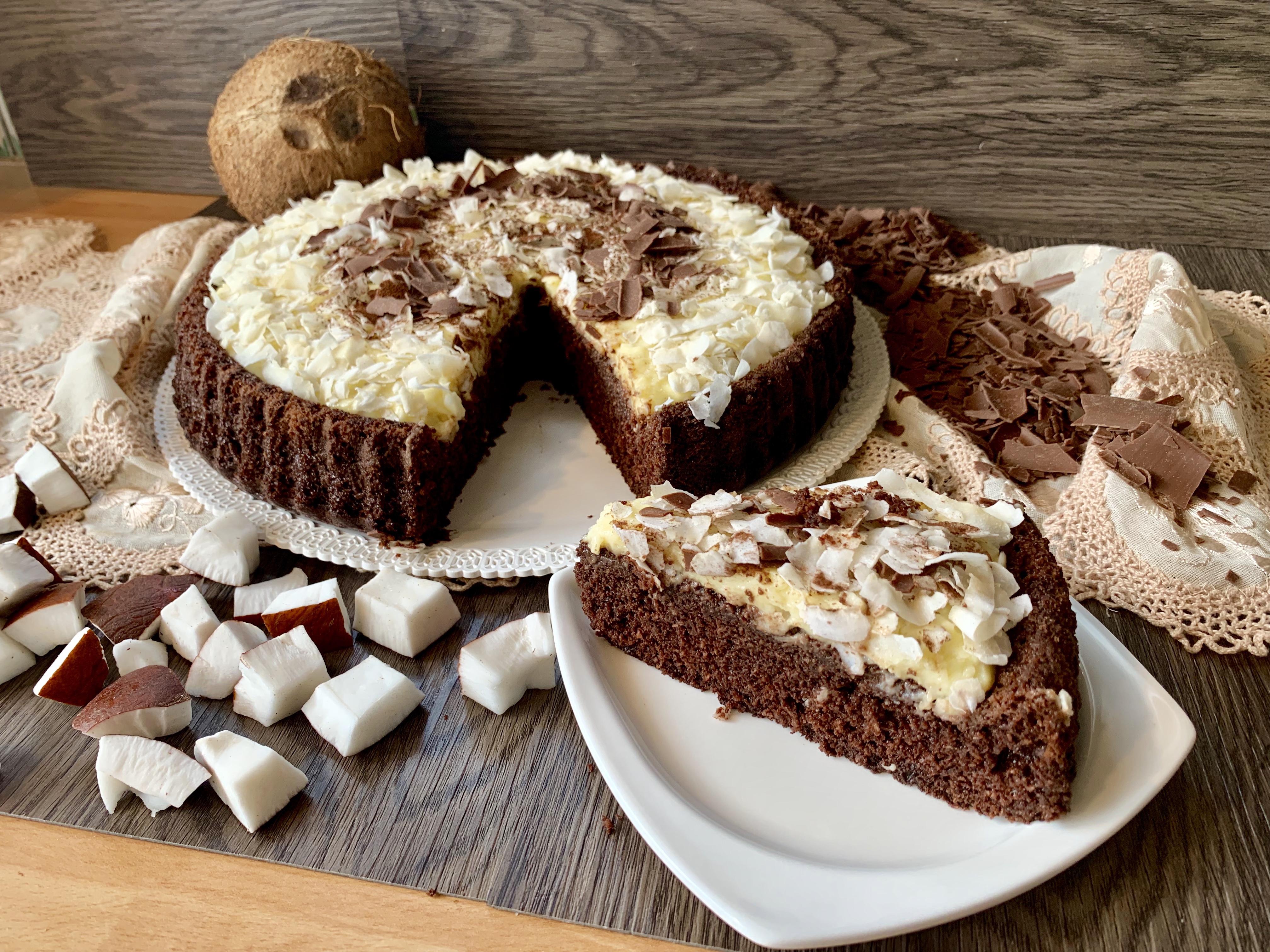 The Coconut and Chocolate Cake is gluten and lactose free, soft, tasty and no one will realize that the classic ingredients such as wheat flour and cow’s milk are missing.