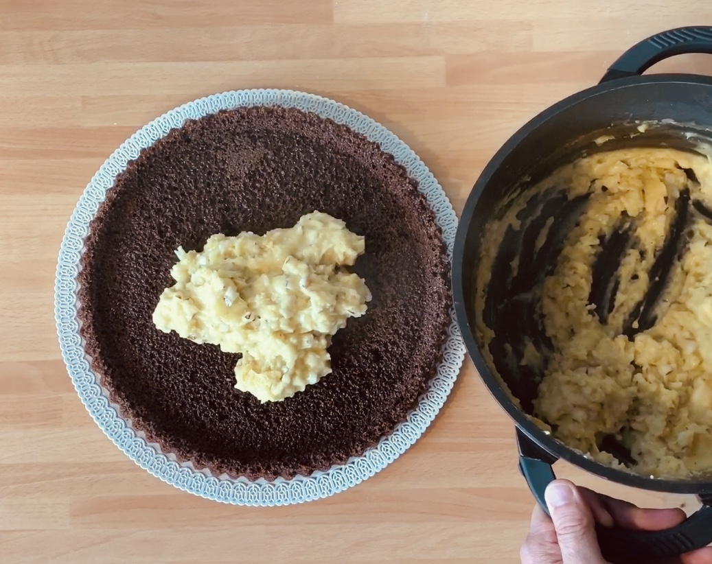 lasciare che il pan di spagna assorba lo sciroppo e poi farcirlo con la crema al cocco e mettere in frigo per almeno 4/6 ore, meglio se un giorno per l’altro.