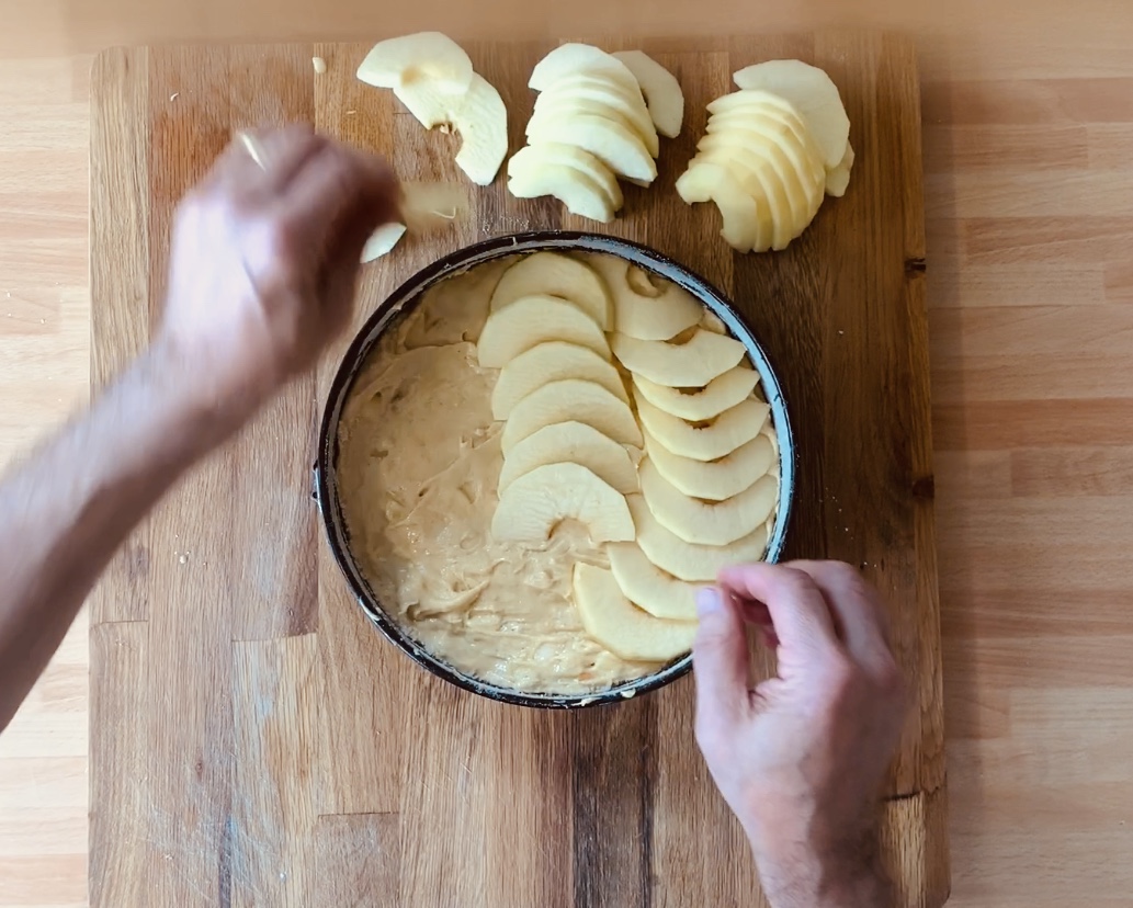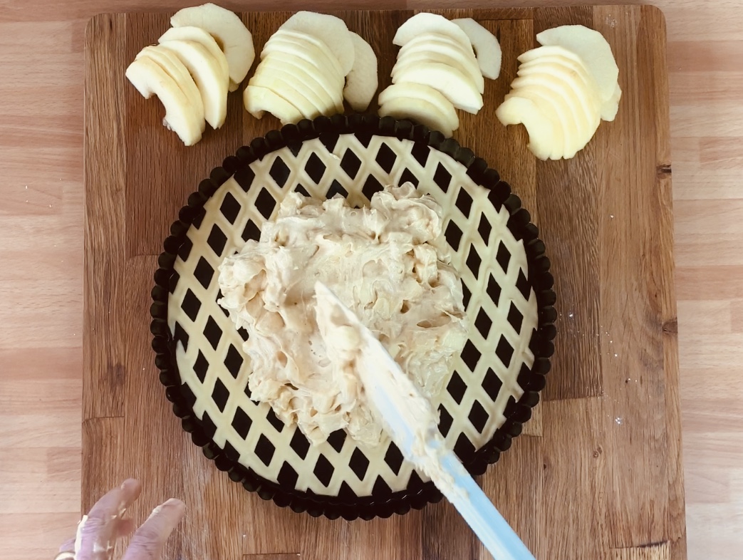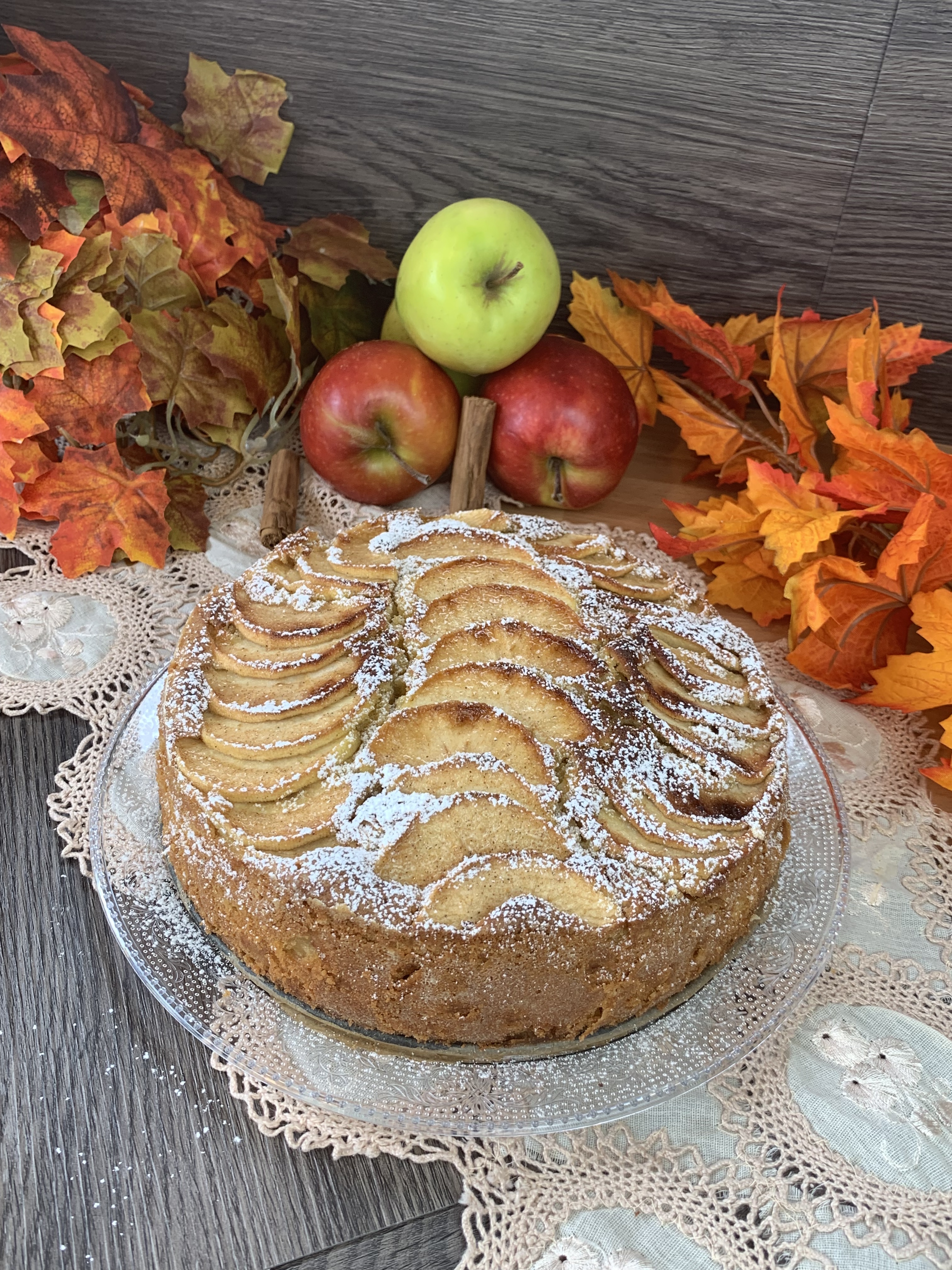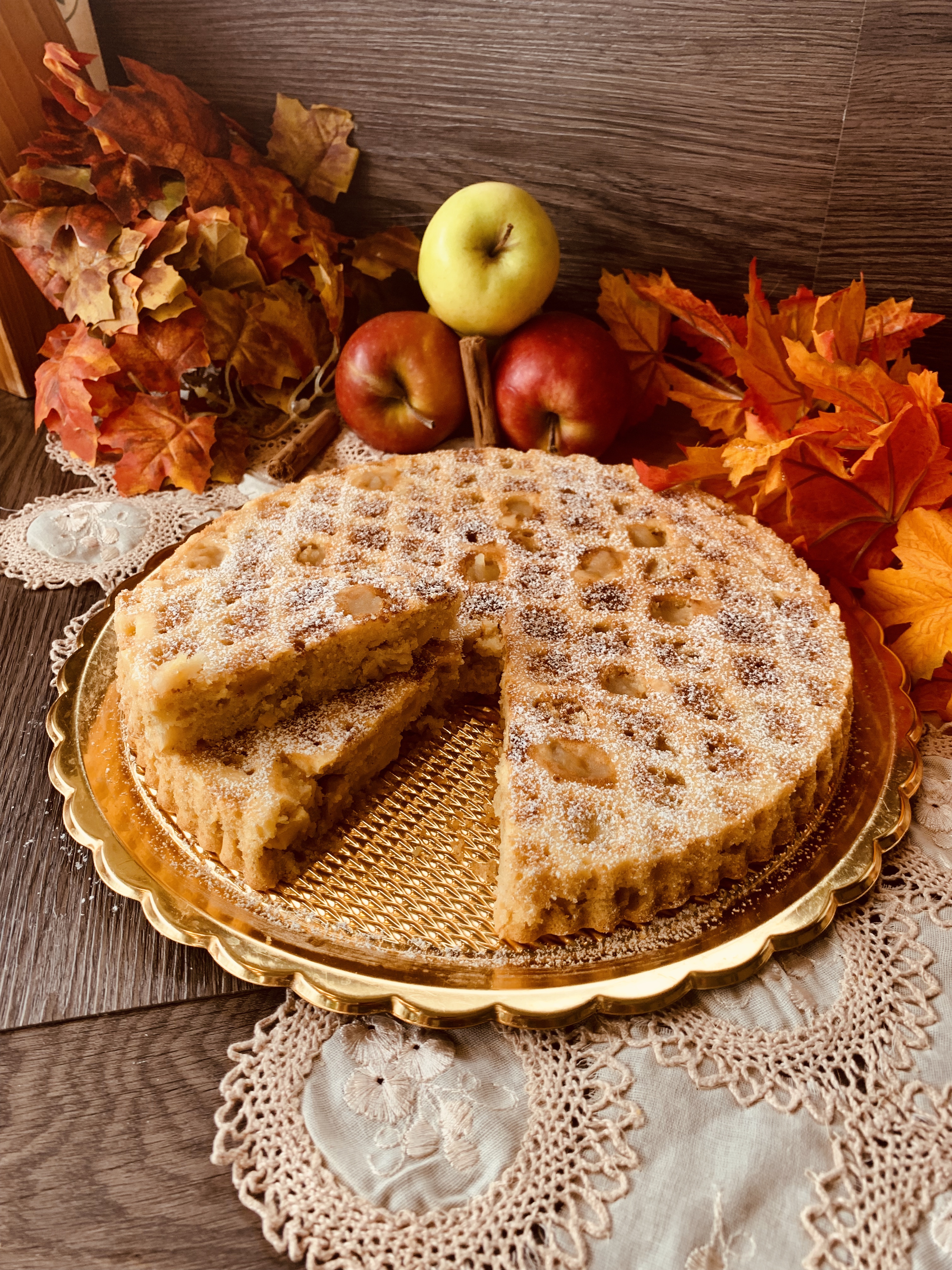 Se volete renderla piu’ bella e gustosa, fai come ho fatto io, puoi coprire la superficie con delle fettine di mele e spolverargli sopra un pò di zucchero misto a cannella se ti piace.
