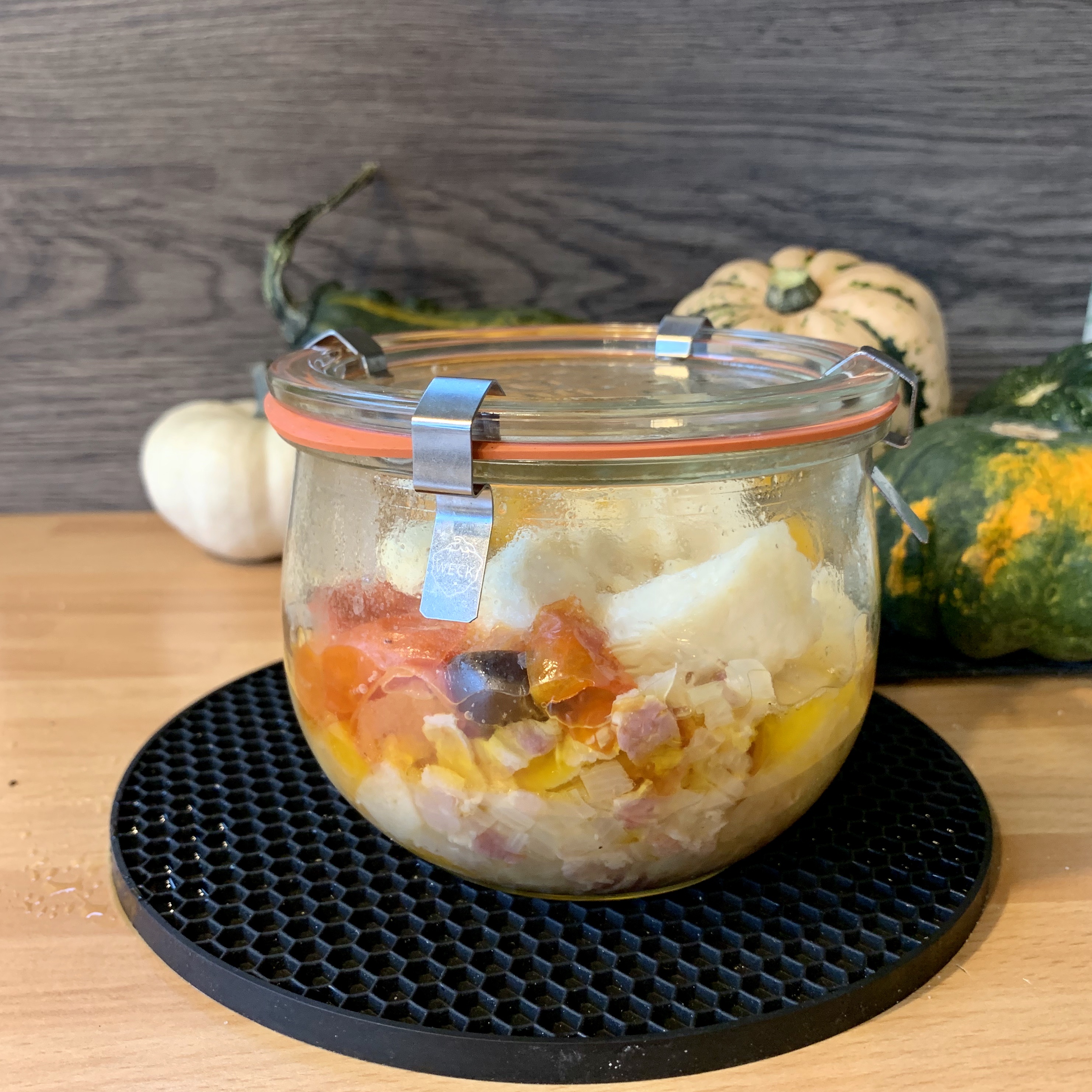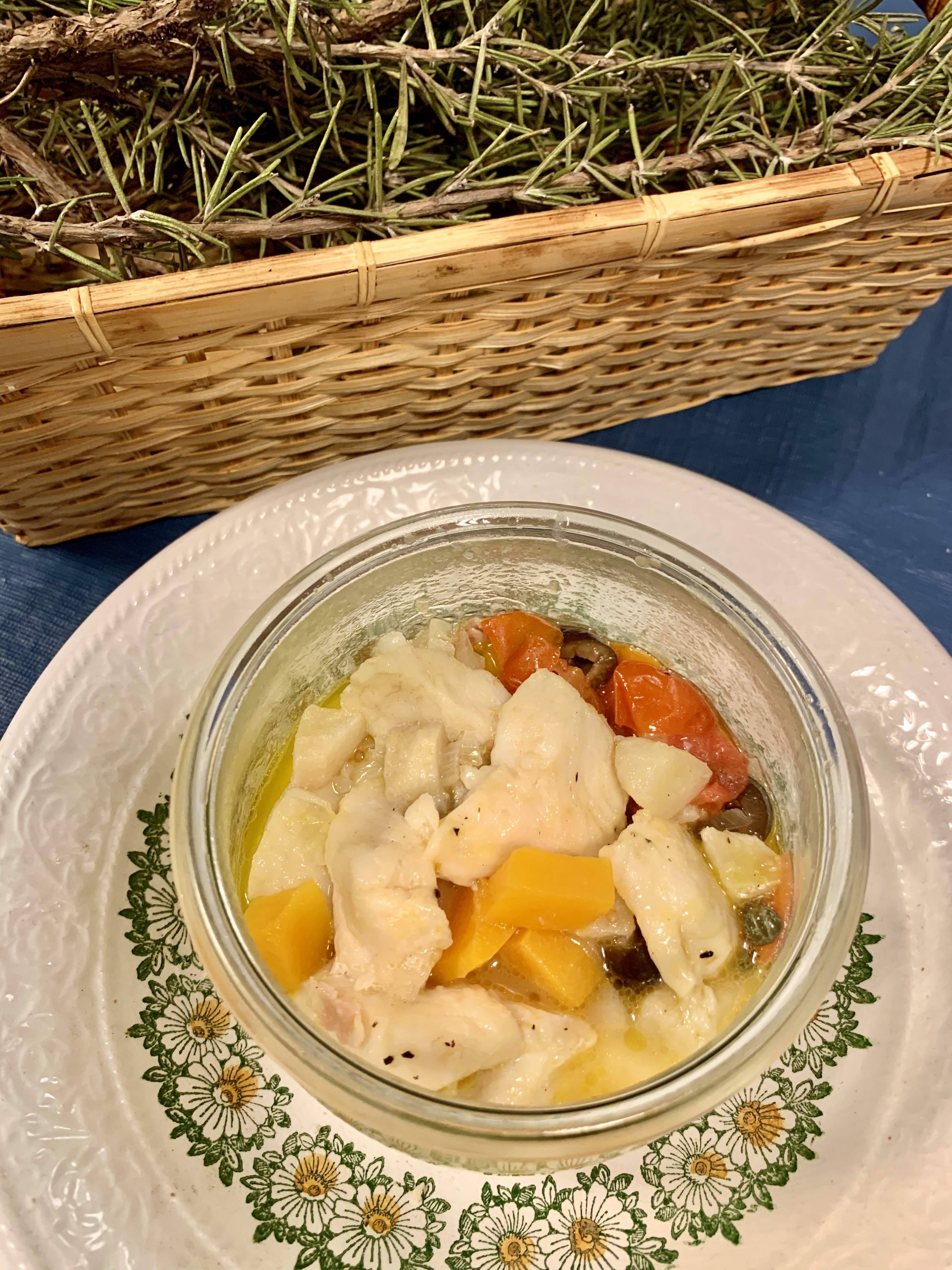 É tempo di zucche e pere autunnali, perché non unirle in una ricetta salata con del buon pesce, io ho usato il merluzzo ma si adatta a qualsiasi altro pesce. Con l’aggiunta della pancetta affumicata, olive, pomodori e capperi e la cottura in Vasocottura nel microonde, in poco più di 5 minuti avete un piatto saporito e pieno di energia.
