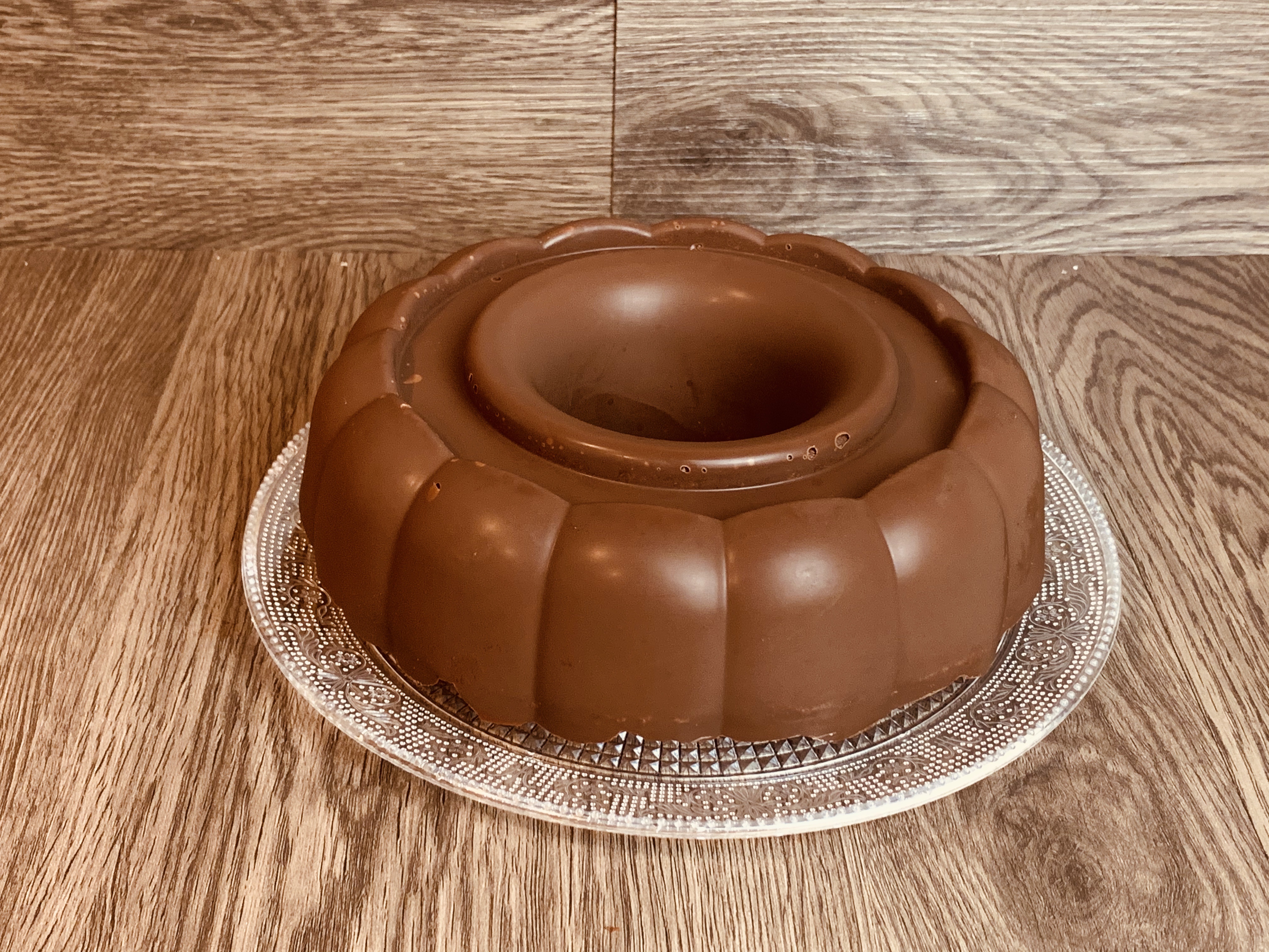 Lasciare raffreddare a temperatura ambiente e toglierlo dallo stampo che andrà lavato per la glassatura a cioccolatino