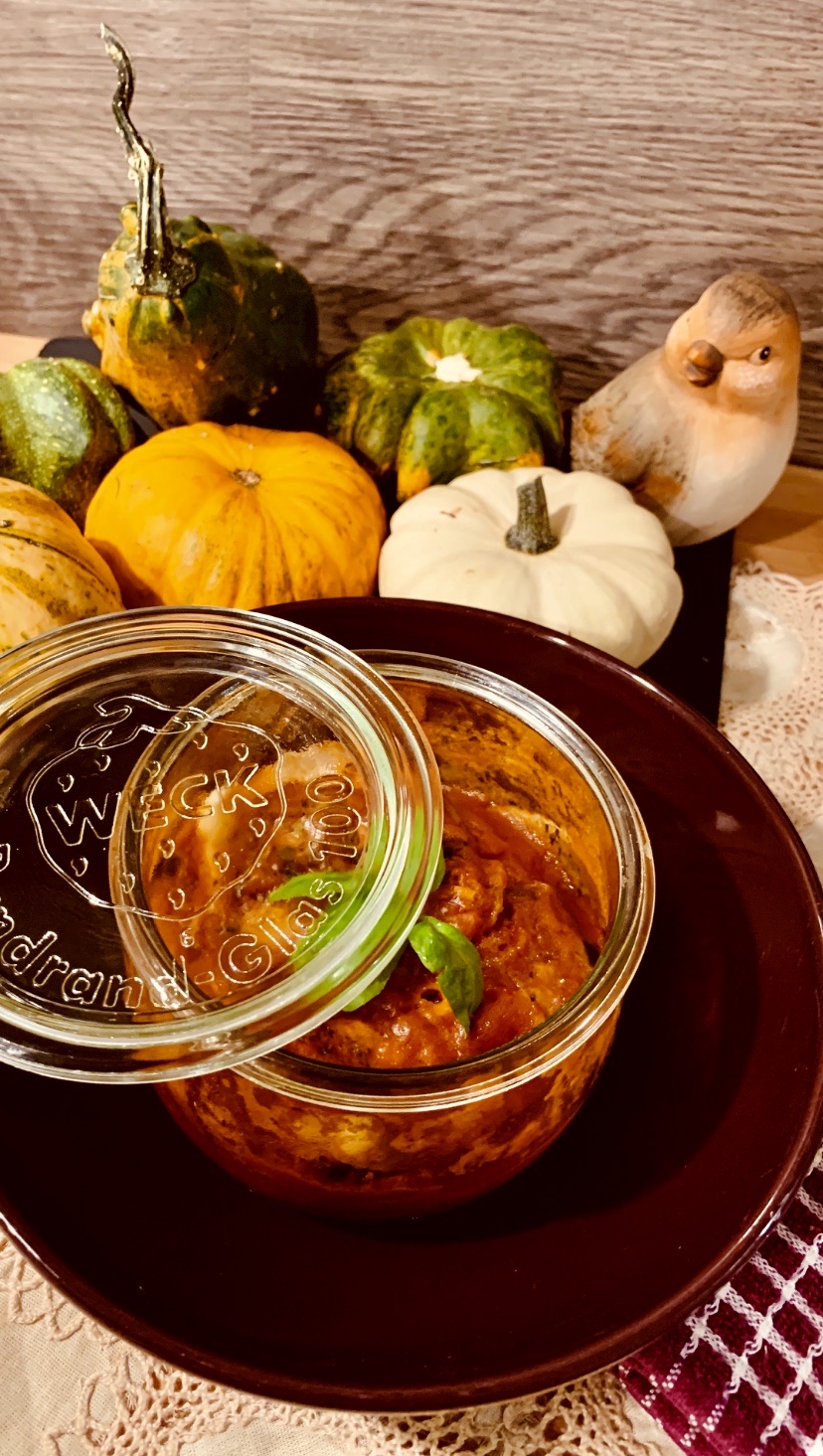 Io ho preparato due Vasetti della Weck da 500 ml e in uno dei due ho anche messo uno strato di purea di zucca ed utilizzato sempre il Microonde per la precottura delle patate e melanzane