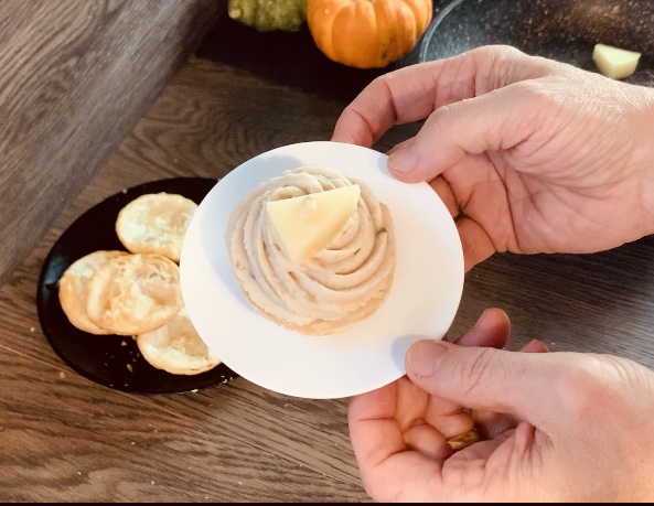 Montaggio della Sfogliatine alla Crema di Castagne e Mascarpone con Scamorza Grigliata: