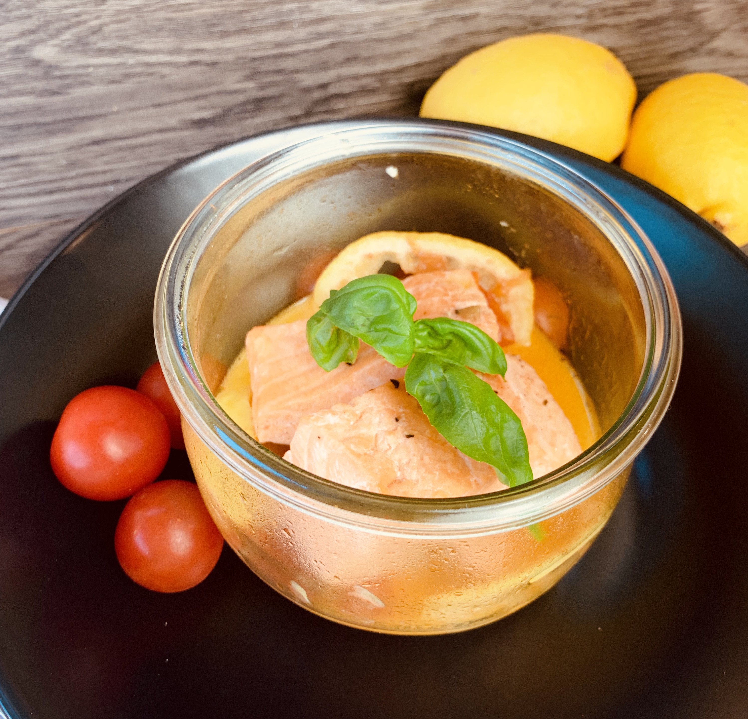 In a 500ml weck jar I laid a slice of salmon cut in two and salted on the bottom