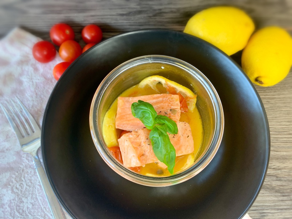 Un delizioso secondo piatto di pesce, cotto in 3 minuti al microonde con la Vasocottura, senza lasciare odore di pesce in cucina e mantenendo tutti gli odori e umori nel vasetto.
