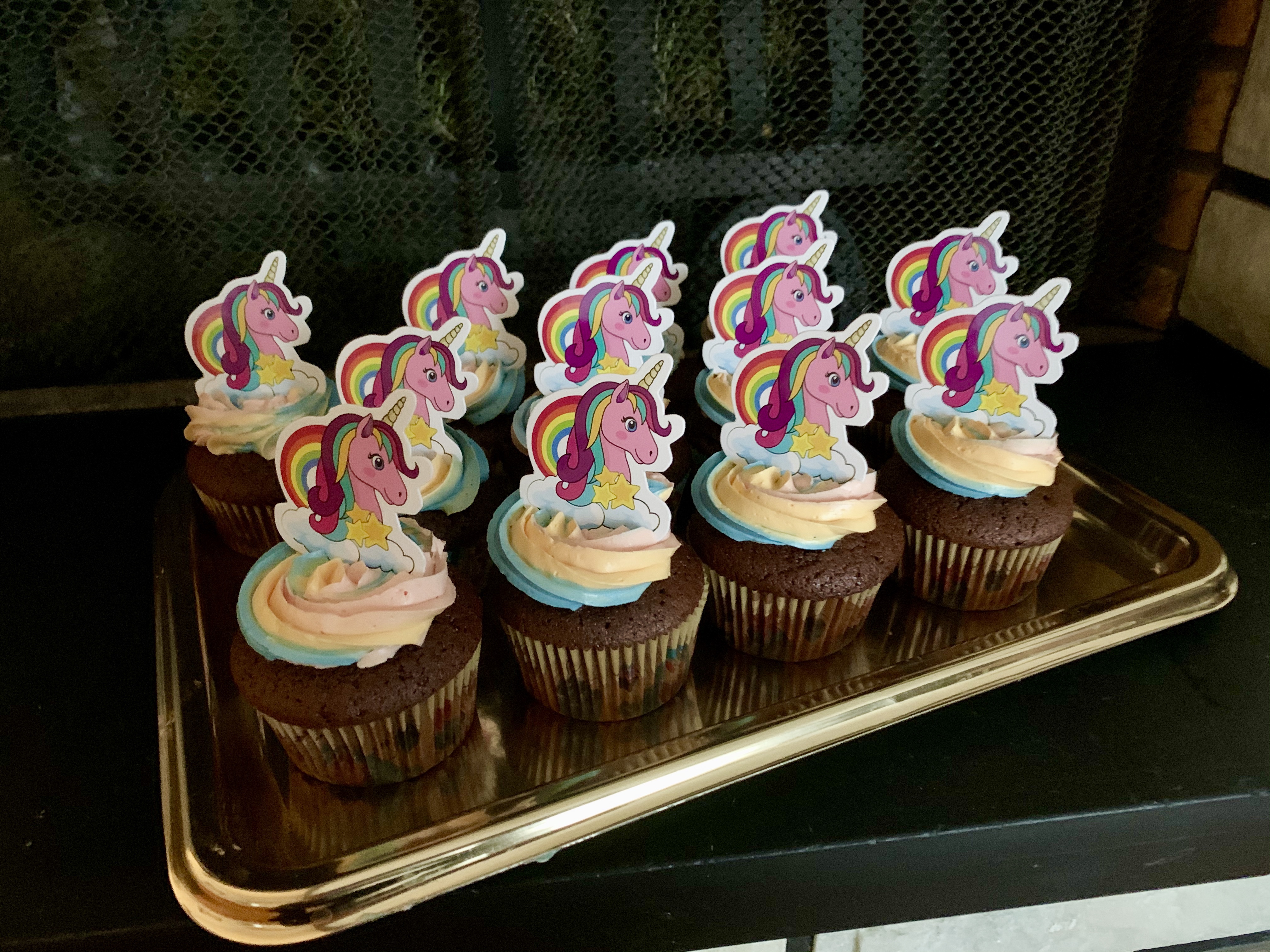 Qui vi descrivo la ricetta dei Cupcake al Cioccolato ripieni di Nutella e decorati con una setosa e delicata Crema al Burro Meringata arcobaleno; nei prossimi giorni vi descrivero’ la ricetta della Torta a due piani con pan di spagna al latte caldo, ripiena di crema al latte condensato e ananas, ricoperta di cioccolato e decorata Unicorno.
