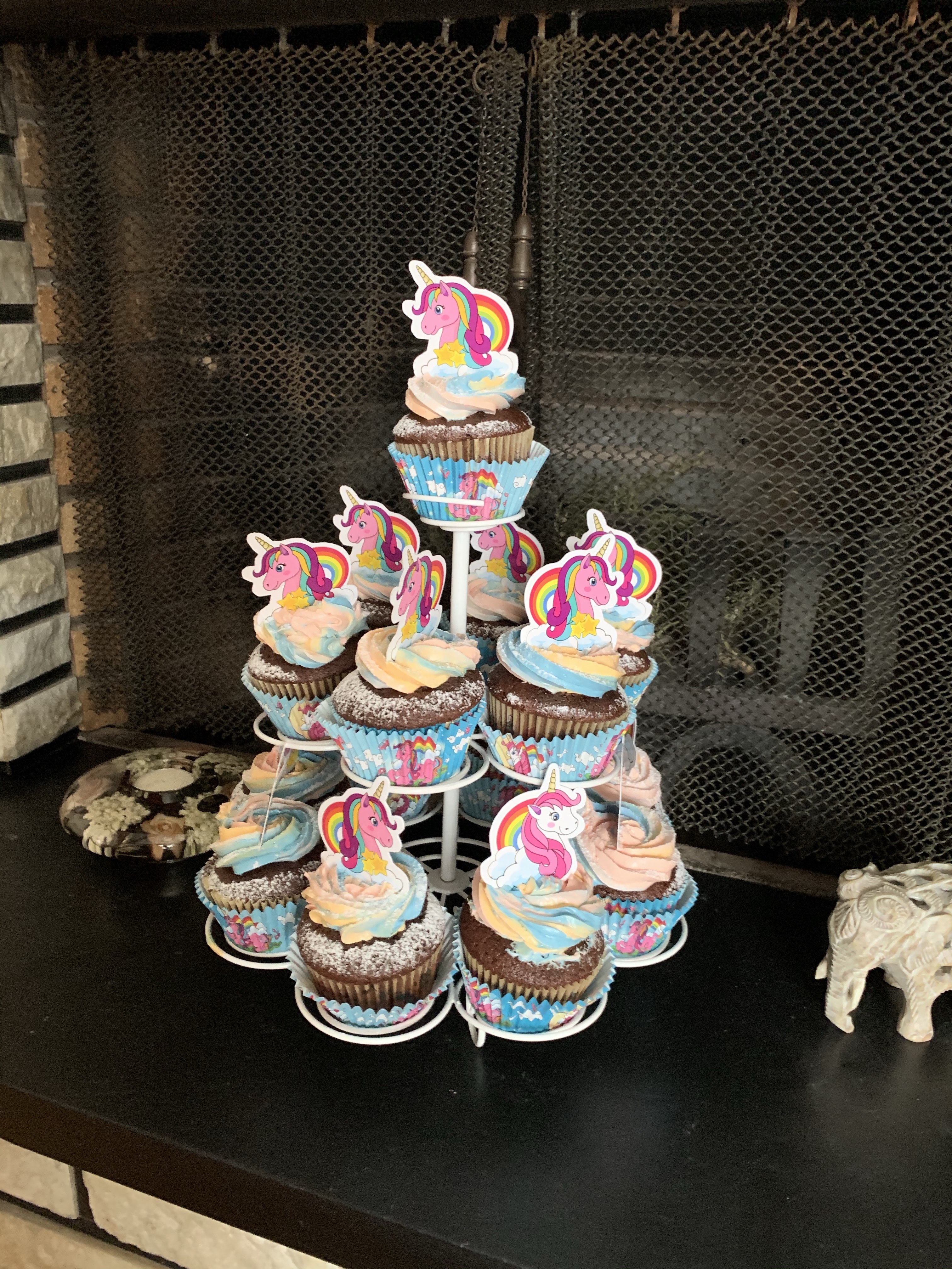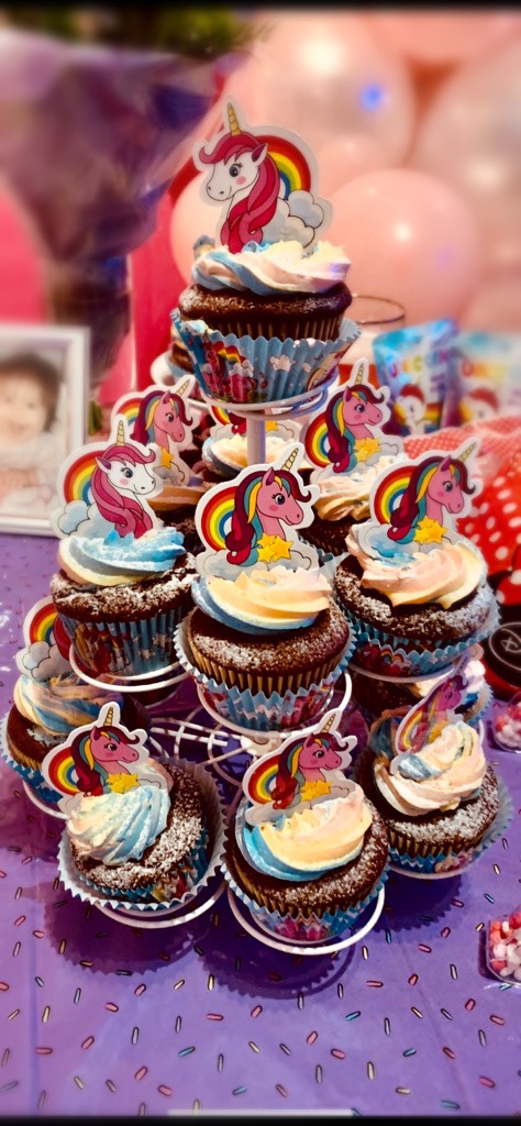 li ho poi spolverati con dello succhero a velo ed ho incastrato al centro un unicorno in cartoncino.