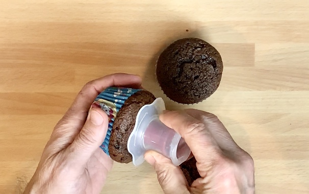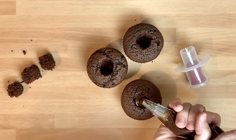 Far raffreddare i cupcake su una griglia e con l’apposito attrezzino ricavare un incavo al centro e farcirli con della nutella