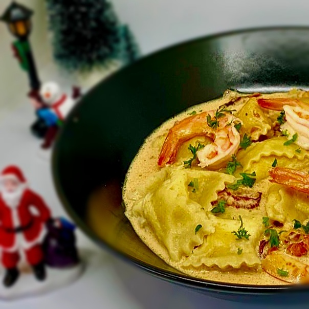La tavola di Natale, oggi, è una pasta ripiena del mio Piemonte, i Ravioli del Plin, che normalmente sono ripieni di carne mista, li propongo in una versione nuova, che rompe la tradizione regionale e accoglie quella natalizia: il pesce. Un delicato ripieno di ricotta vaccina e salmone affumicato, con una salsa di gamberi, come condimento, rendono questo piatto frizzante e sfizioso. Un piatto per il pranzo di Natale con il quale partecipo con Atavolaper4 al Menù di Natale.
