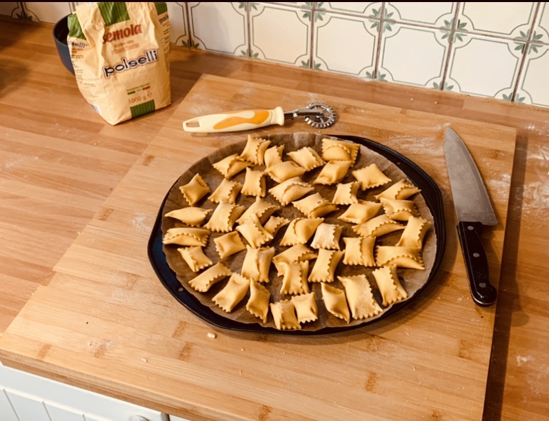 Trasferisci i ravioli su un vassoio con una spolverata di semola e preparare la salsa