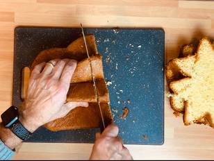Tagliare a fette il pandoro, circa mezzo centimetro di spessore