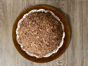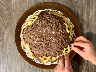 Ho aggiunto nel ripieno delle “crêpe dentelle”, delle cialde arrotolate molto friabili e delle scaglie di cioccolato. Poi esternamente può essere lasciato così com’è, dove il disegno dato dall’intersezione delle fettine di Pandoro rendono già bello lo Zuccotto, ed ho già fatto in passato, oppure con questa versione più golosa ed elegante che vedrete infondo a questa ricetta.