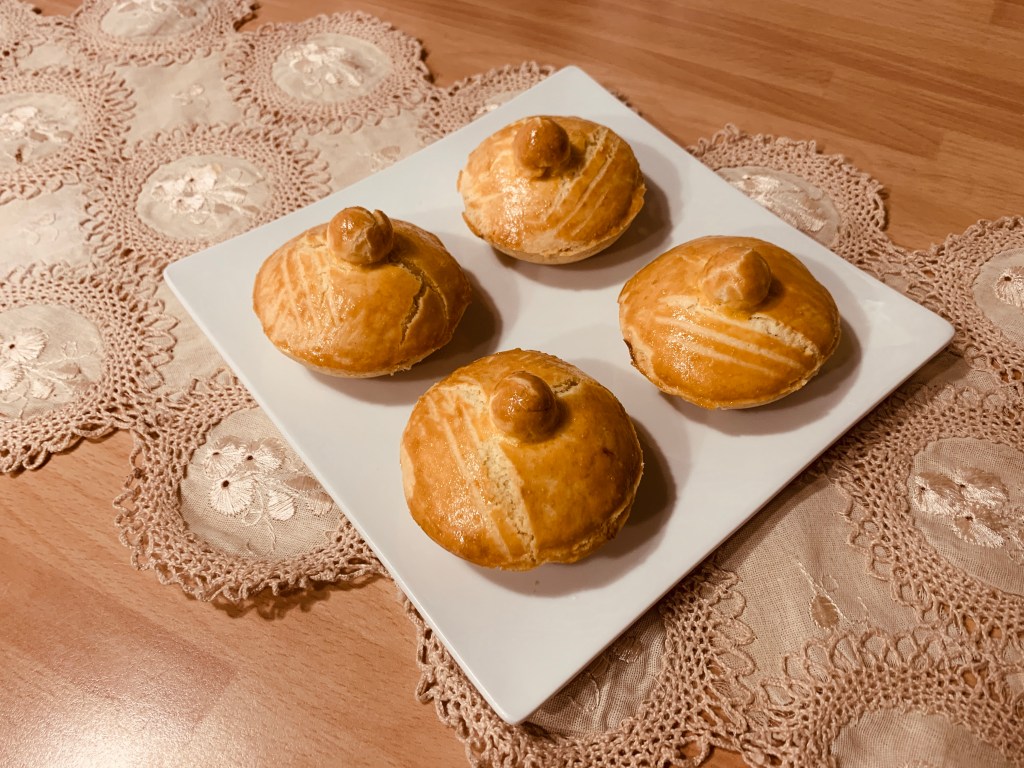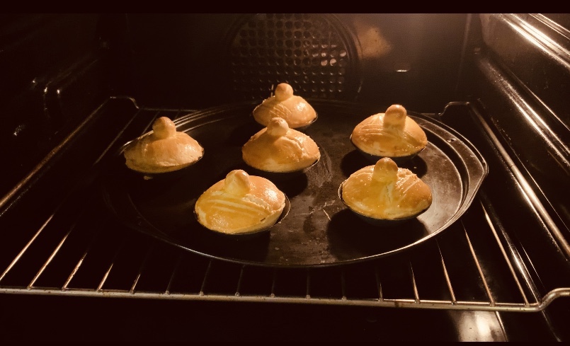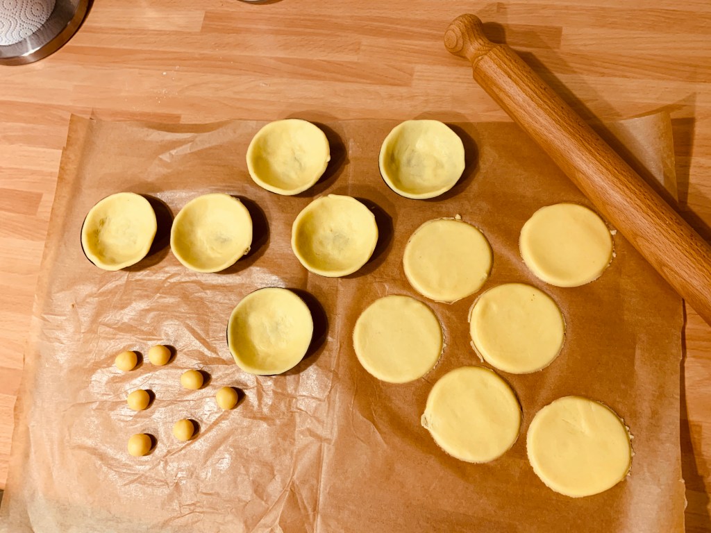 collare al centro la pallina di frolla e spennellare la superficie sempre con il tuorlo d’uovo e mettere in formo a 180° gradi per circa 25 minuti, quando la frolla si sarà dorata i tortini sono cotti.