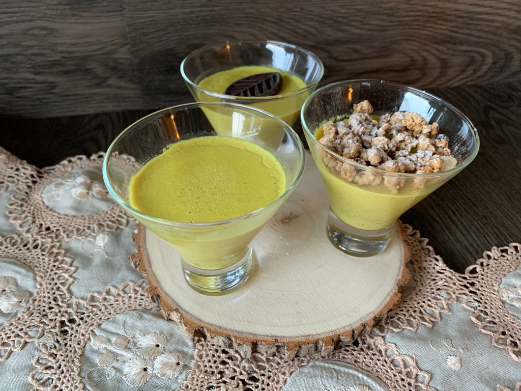 Suddividere La Panna Cotta Golden Milk in 4 bicchierini e passarla in frigo per un paio di ore