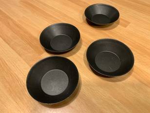 Ho coppato dei dischi da 7 cm e foderato delle formine dello stesso diametro, bucherellato il fondo con una forchetta e cotte in bianco per circa 20 minuti a 180 gradi nel forno statico
