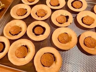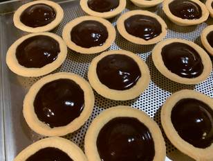 Ho versato un paio di gocce sul fondo della tartelletta e appoggiato un amaretto, poi ho coperto l’amaretto con la ganache