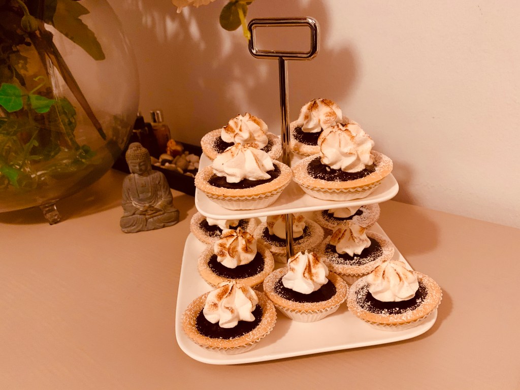Avevo della pasta frolla che mi era avanzata da un’altra ricetta ed ho pensato di confezionare delle crostatine, ma non sapevo ancora come farcirle. Ho foderato delle formine fa 7 cm e cotte in bianco. Poi ho visto cosa avevo disponibile nella mia dispensa di ingredienti per dolci ed ecco nascere Una Nuvola da 30 grammi di Dolcezza. Per la felicità di chi è intollerante al glutine e lattosio, ma anche di chi non aveva minimamente idea che stava degustando un dolce dai sapori e ingredienti sconosciuti
