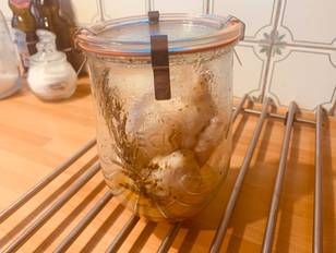 Questa volta ho voluto replicare la ricetta di Rosella Errante senza modificare di molto gli ingredienti; un semplice ma gustoso Galletto da 500 gr cotto in un vaso Weck da 1 litro, aromatizzato con una marinatura di olio extra vergine d’oliva, un mix di 5 spezie, aglio e rosmarino.