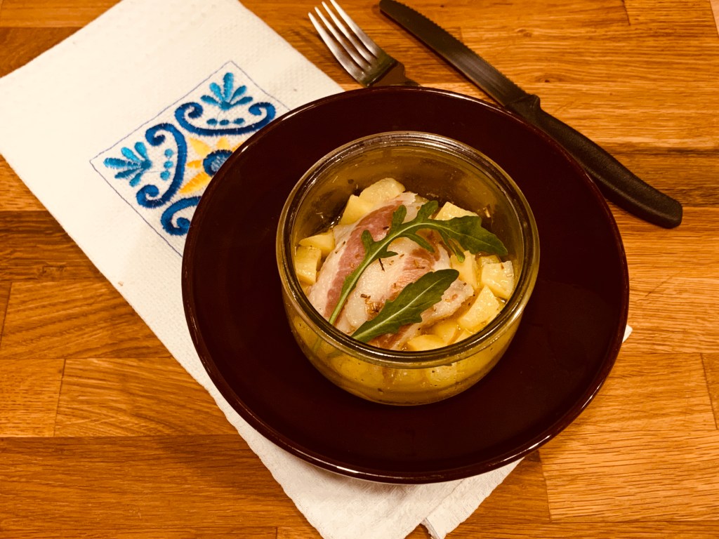 Una ricetta sfiziosa dal gusto equilibrato; Il Filetto di Maiale avvolto da fettini sottili di guanciale, con un accompagnamento di cipolla e mela, cotto con il metodo della Vasocottura al Microonde in soli 5 minuti.