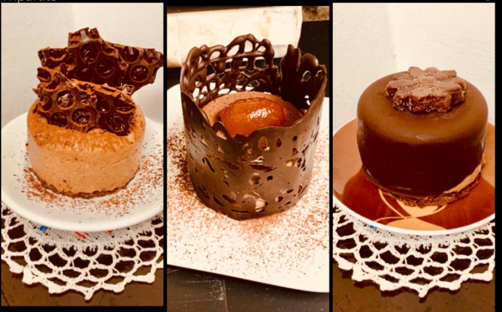 Dopo aver provato la nuova crema di nocciole Pan di Stelle, ho subito pensato di utilizzarla per un dolce semifreddo, una Mousse di Crema Pan di Stelle su un dischetto di biscotto Sacher, e approfittando del corso di cioccolata di Raffaella Locatelli della Cookpad, l’ho decorata in 3 modi differenti.