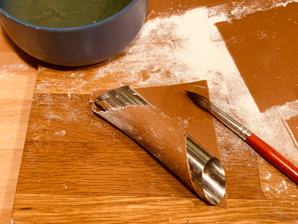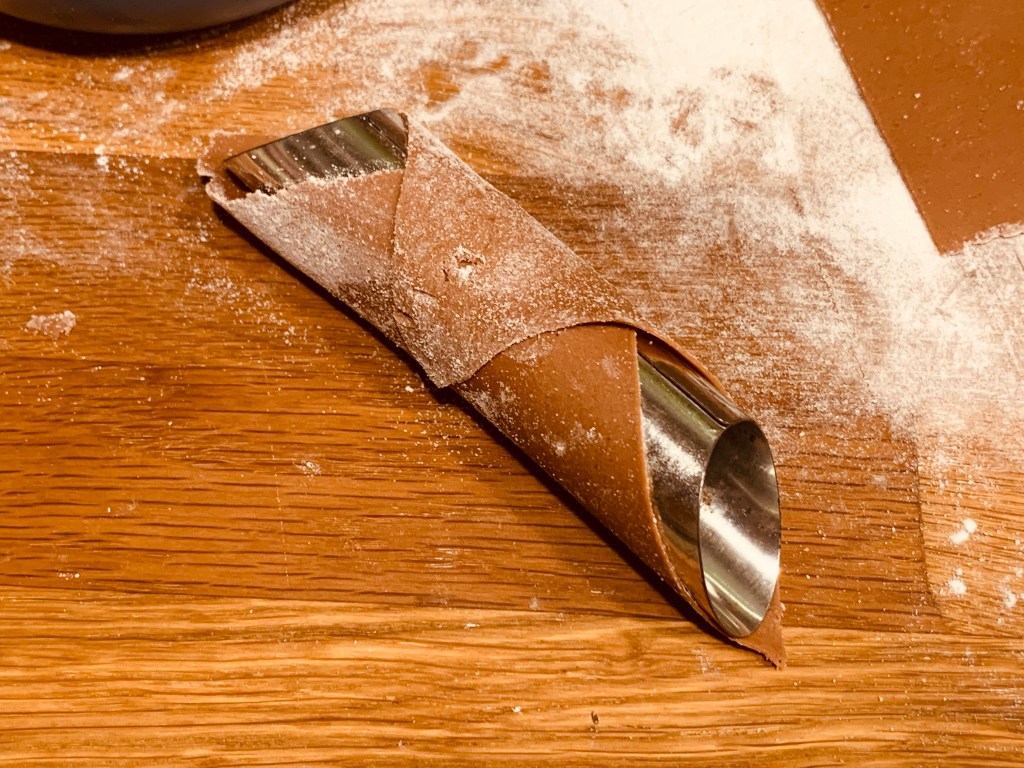 Tagliare dei quadratini da 10 cm di lato e avvolgerli nella tradizionale forma alle canne di alluminio saldando il lembo al corpo del cannolo con un pennellino intinto nell’albume.