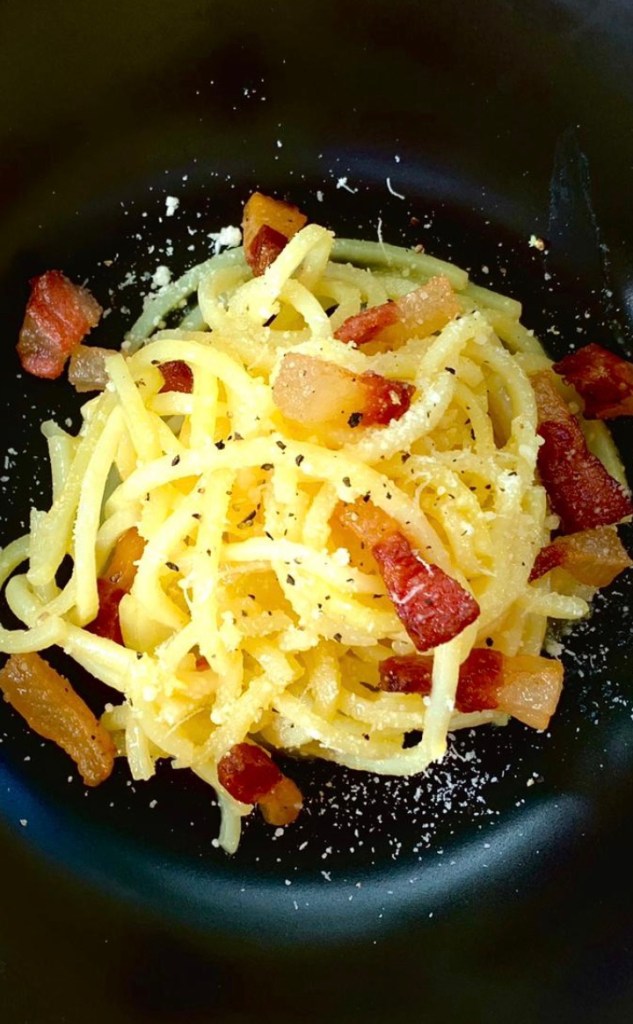 Per la Carbonara Day ho sostituito i classici bucatini con spaghetti di patate utilizzando un apposito accessorio com coltelli a spirale.
