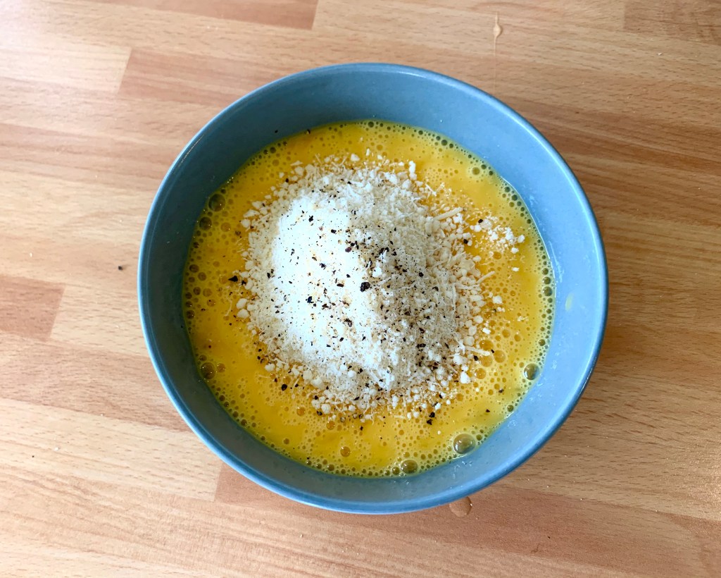 In una ciotola ho sbattuto le uova con il pecorino e il pepe