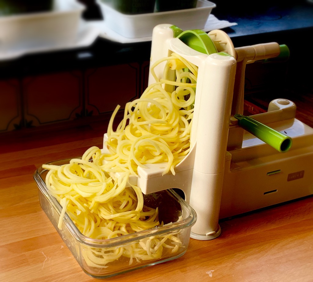 Ho lavato e sbucciato le patate e le ho tagliate a spaghetti con l’apposito attrezzo da cucina
