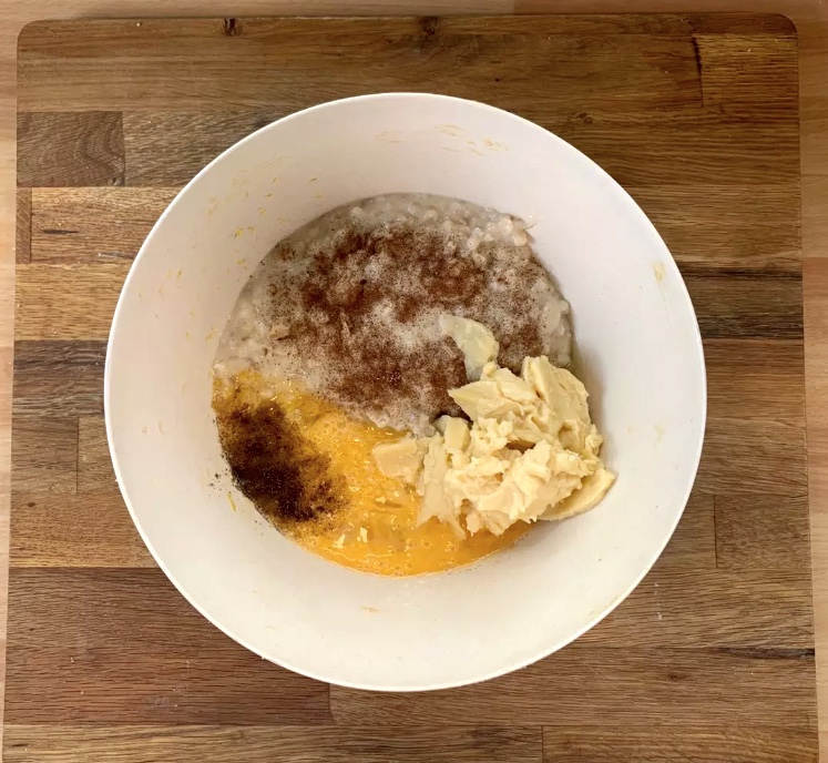 In un contenitore unisci ricotta, zucchero, crema pasticcera, arancia candita, grano cotto, uova già sbattute, cannella, essenza di fiori d’arancio e, se vuoi una pastiera particolarmente aromatica, scorza d’arancia e limone e un po’ di vaniglia.