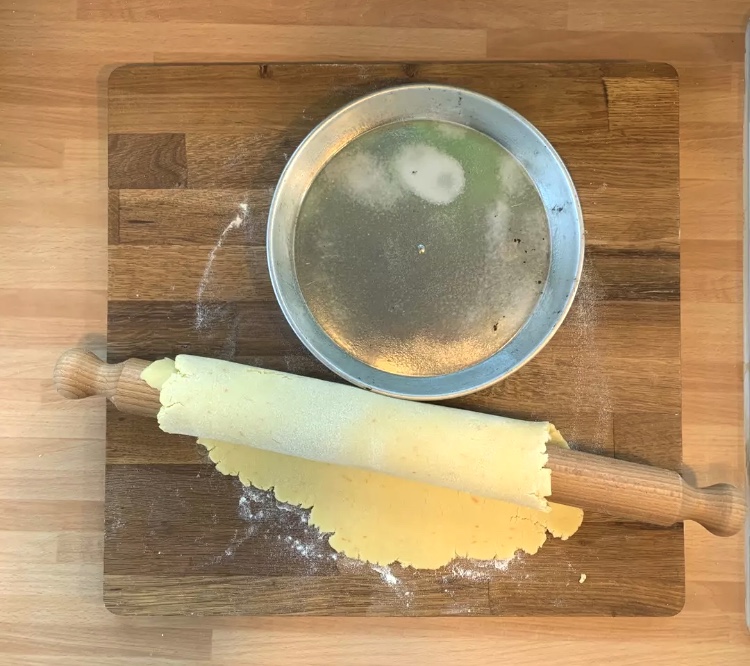 Per la Pasta Frolla di Semola: In planetaria o a mano, disporre la farina a fontana, versarvi dentro burro (o strutto) a temperatura ambiente, zucchero, scorzetta d’arancia ed iniziare ad impastare.