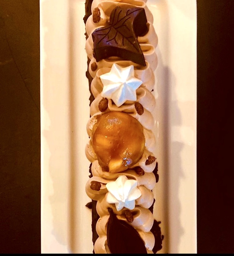 Io ho finalizzato il Cake con delle meringhe, mini tatin di mele, fiorellini di cioccolato plastico, cioccolatini e un macaron