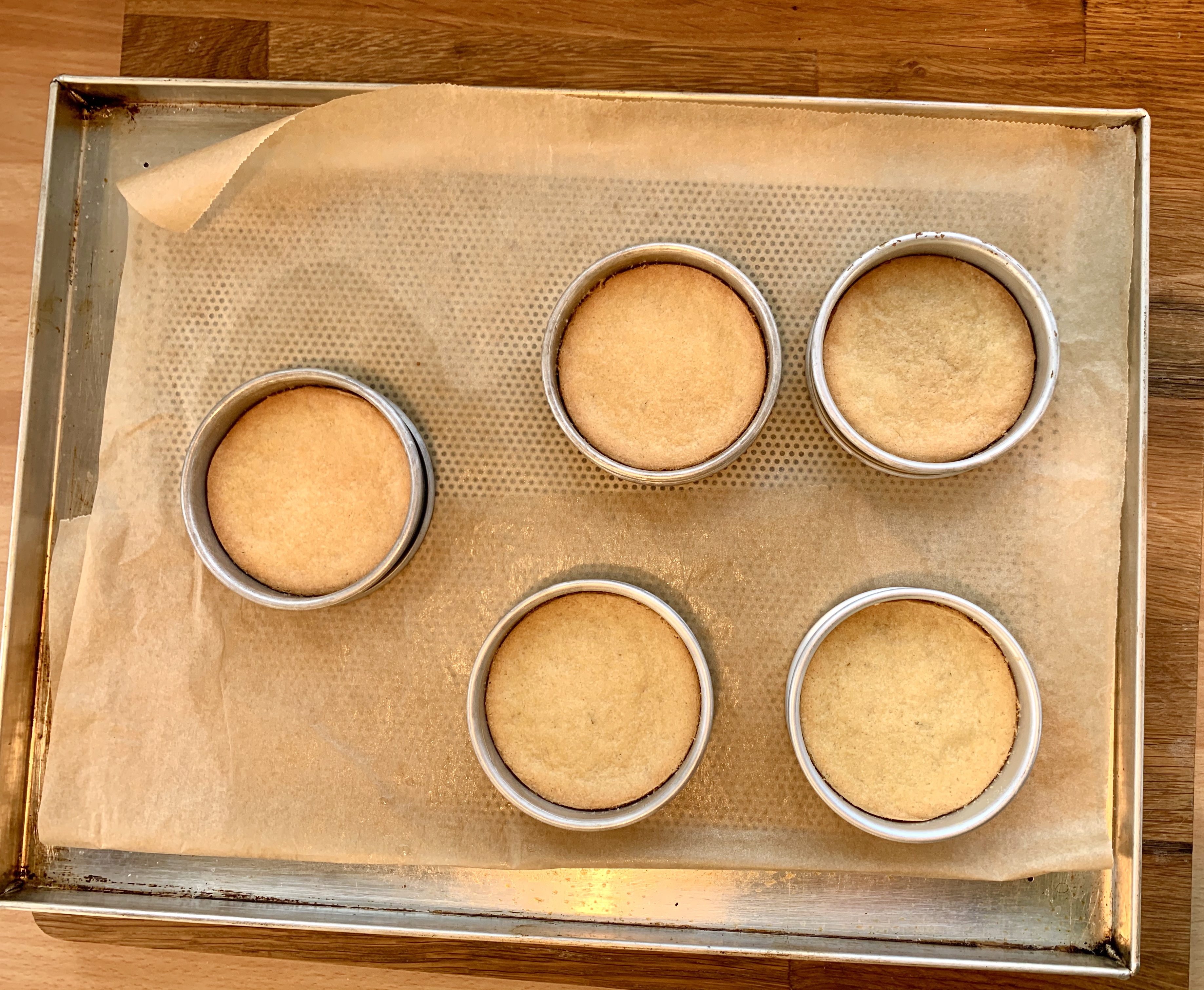 Stendere subito l’impasto ad un’altezza di mezzo centimetro e coppare dei dischi del diametro di 8 cm; adagiarli su una placca ricoperta da carta forno e farli riposare in frigo per 30 minuti.