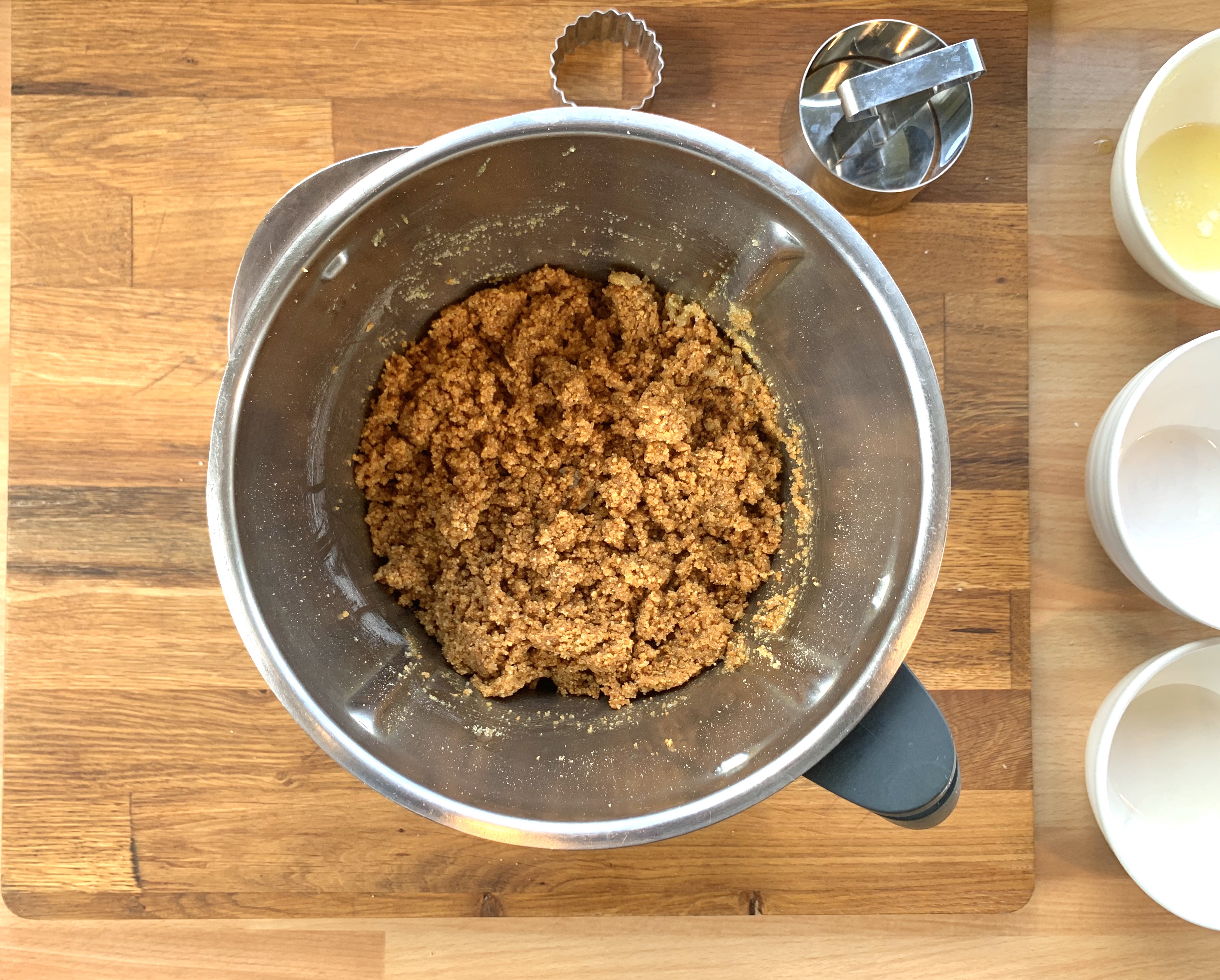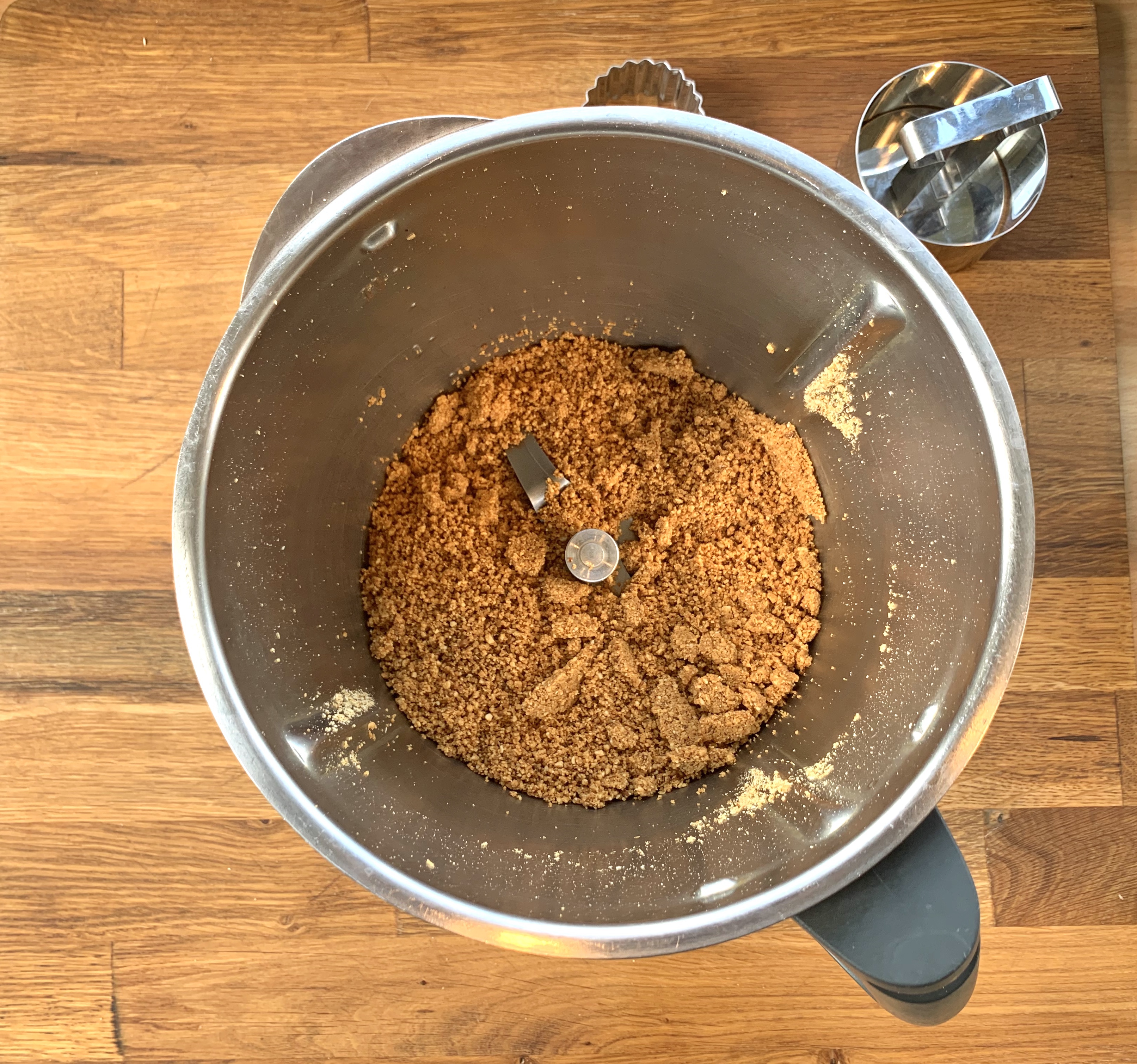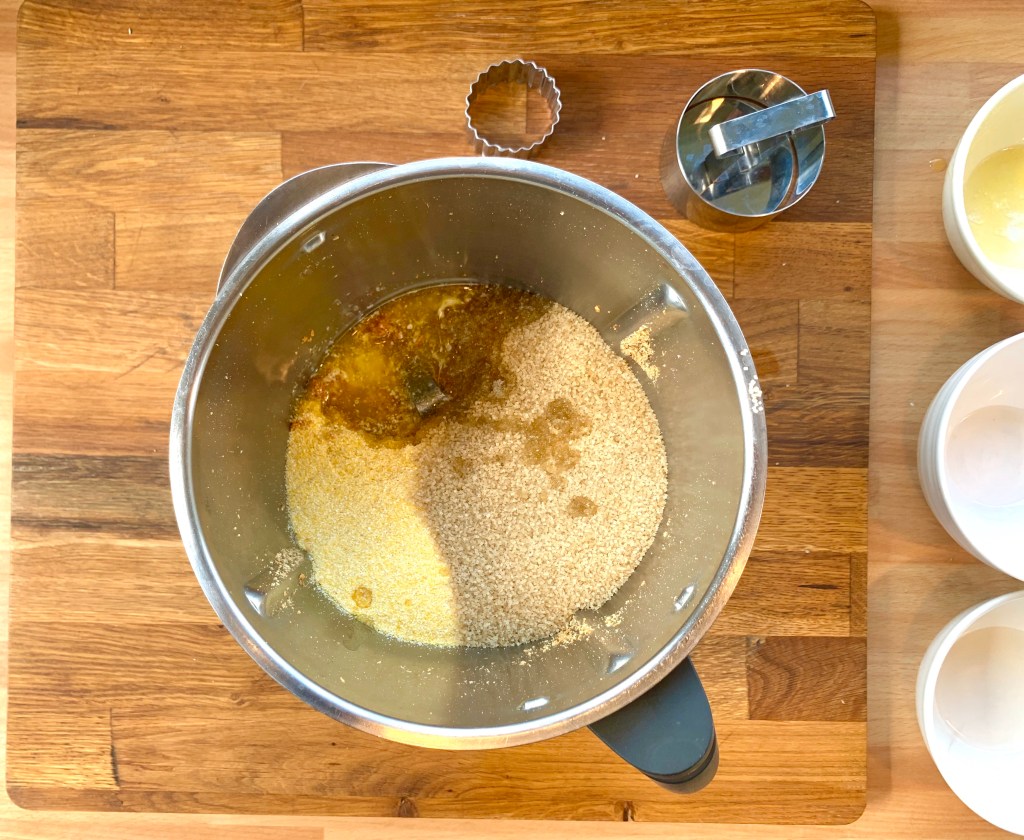 Lasciarle intiepidire e versarle nel boccale del bimby o del carter, frullare per qualche secondo riducendole in farina, attenzione a non frullare troppo o si trasformano in una pasta umida per la fuoriuscita del proprio olio