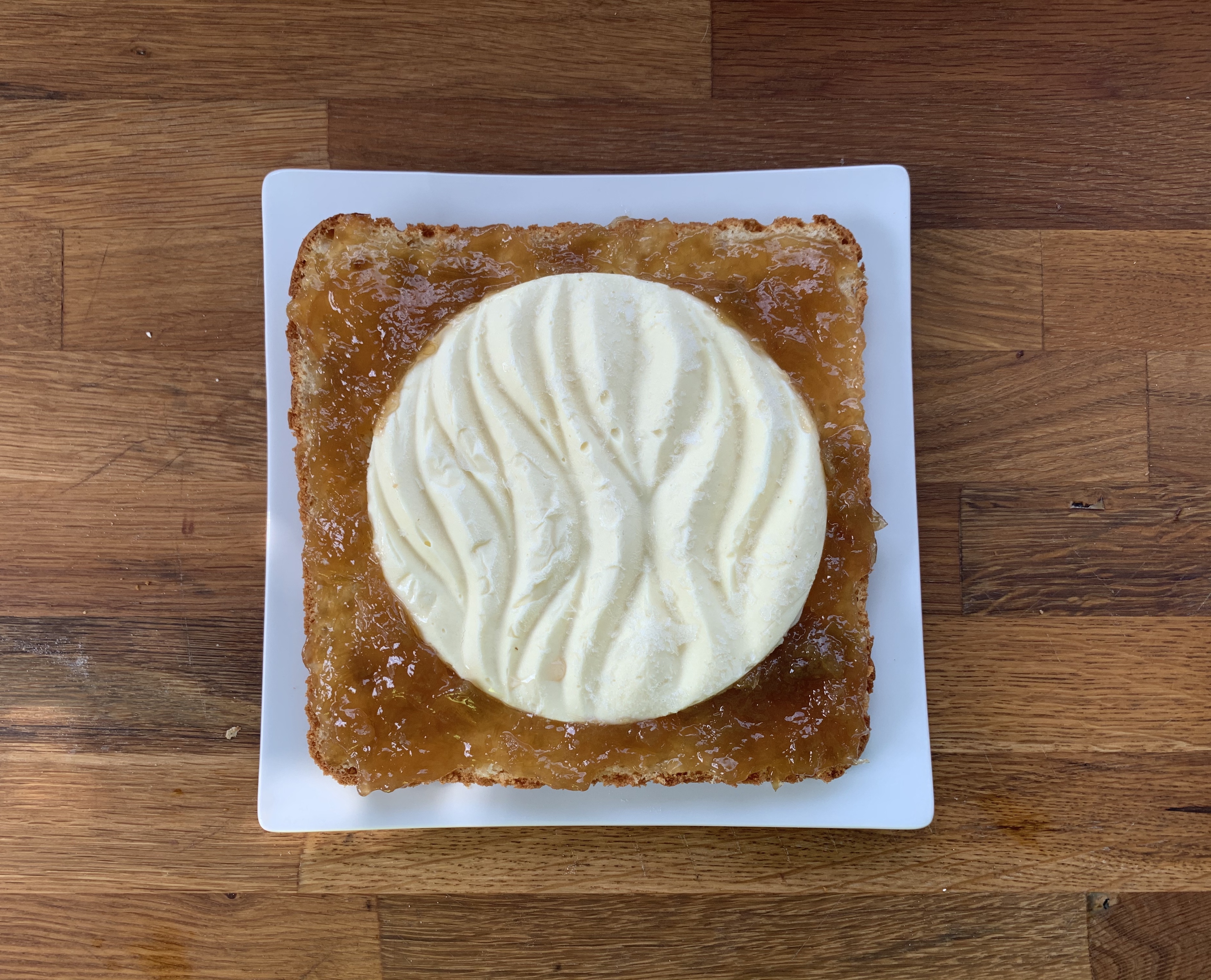 Una delle due Schiacciate l’ho farcita con crema diplomatica e confettura di rabarbaro