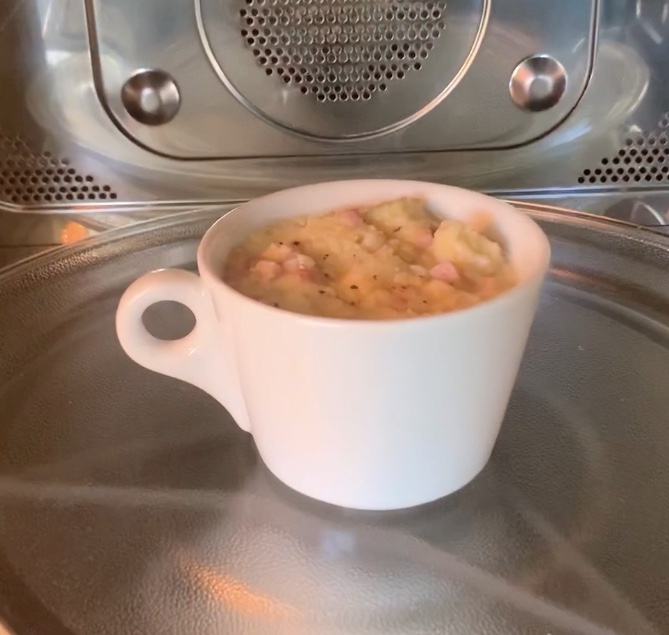 Il tempo di cottura varia in base al microonde e alla larghezza e profondità della tazza, io ho usato una da 200 ml larga