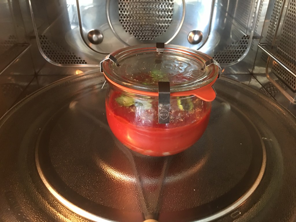 Mettere il vasetto nel microonde senza tappo a soffriggere per 1 minuto