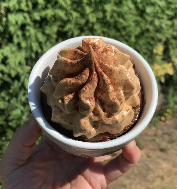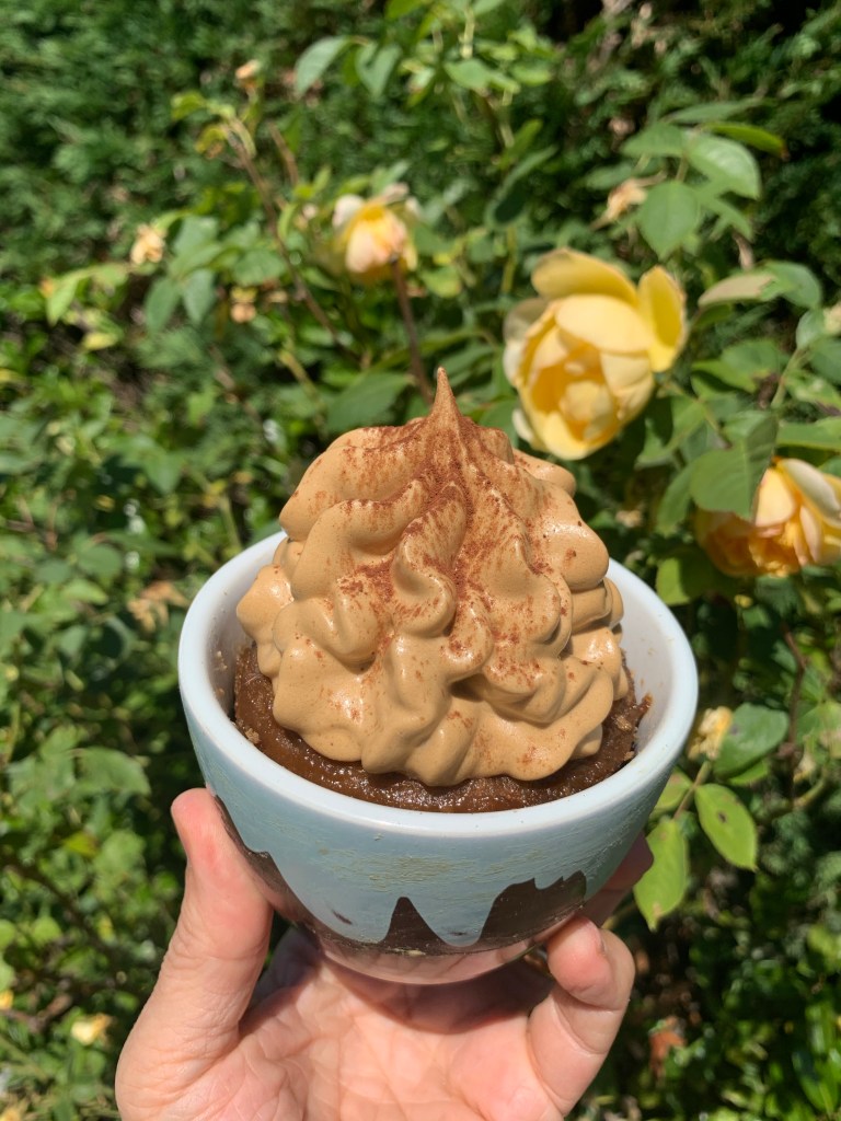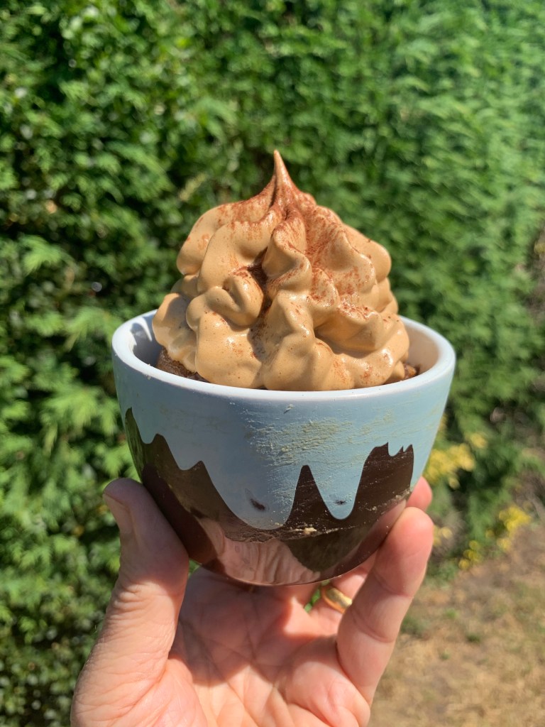 Per dargli un tocco ancor più caffettoso, l’ho coperto con la mia Spuma di Caffè Istantaneo, che tanto successo sta avendo nei social, e una piccola spolverata di cacao.
