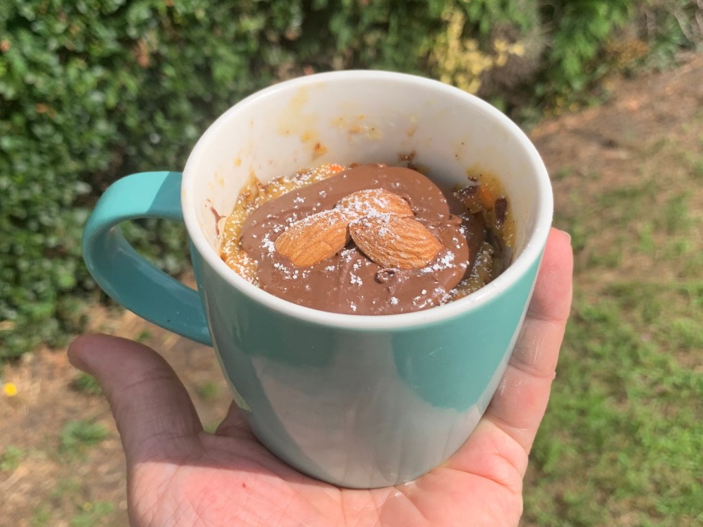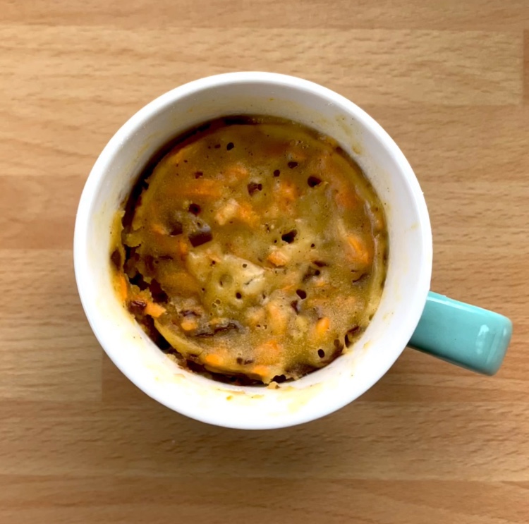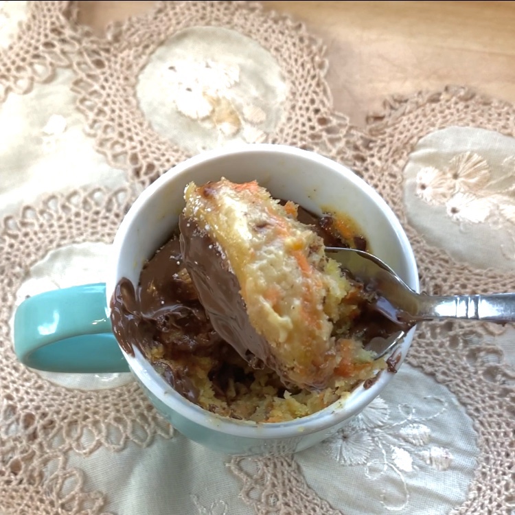 Mug Carot Cake una classifica torta di carote in tazza senza l’aggiunta di uova e zucchero, pronta in 5 minuti per una voglia improvvisa di dolce o perché siete soli, pertanto una mono dose.