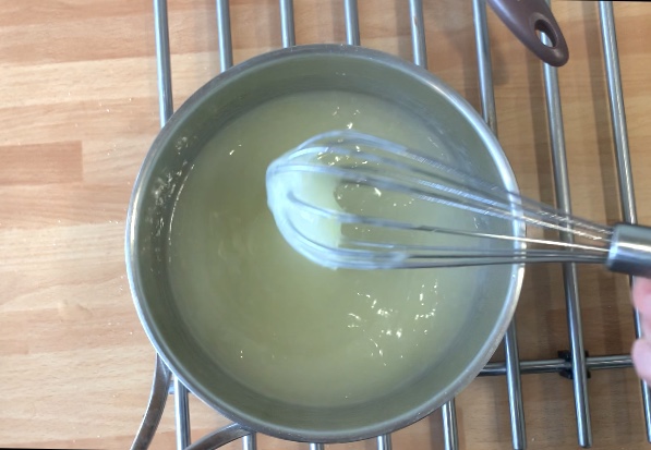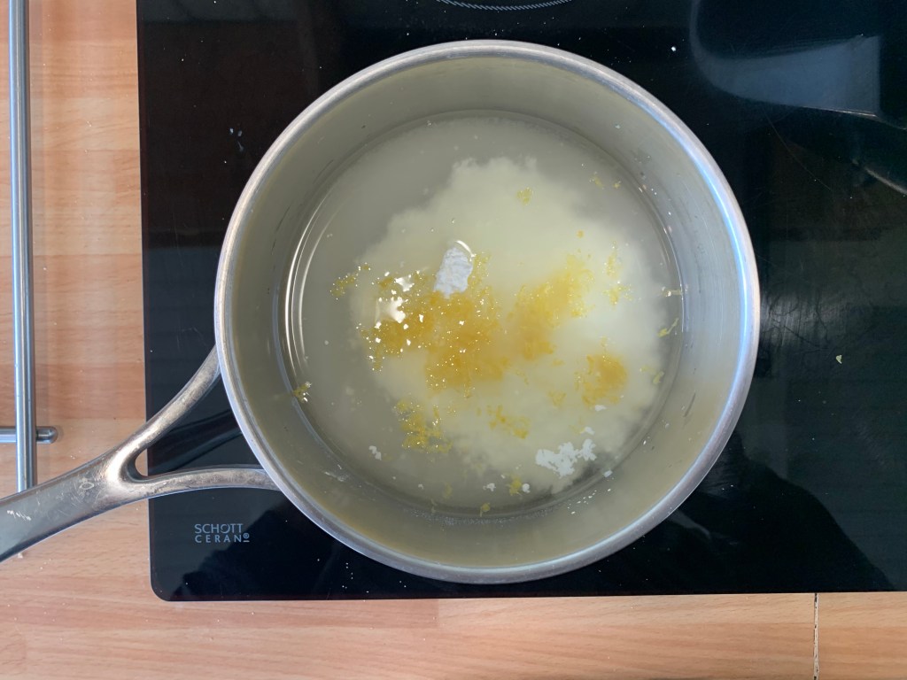Per la Crema all’acqua di Limone: mescolare a freddo l’amido con lo zucchero e la scorza di limone grattugiata, aggiungere l’acqua a filo e mescolare con una frusta e cuocere fino a quando si addensa. Spegnere, aggiungere il succo di limone e mescolare bene poi versarla subito nell’incavo della Crostata morbida prima che si gelifichi.