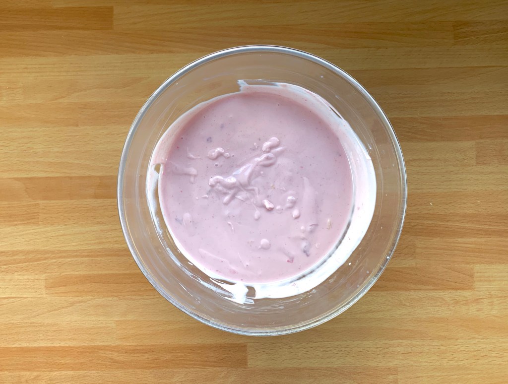 Nel frattempo in una ciotola capiente ho unito lo yogurt dei 6 vasetti di frutta mista e li ho mescolati con una frusta